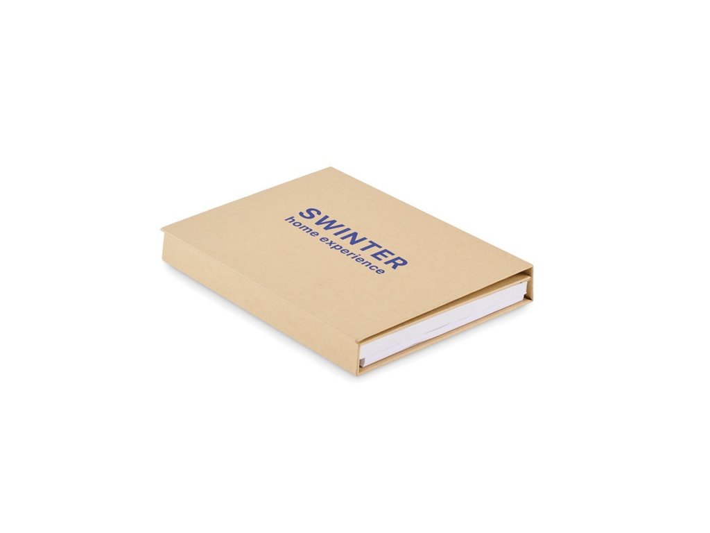 Kancelárska sada s poznámkovým blokom s obalom z recyklovaného kartónu. 70 linajkových recyklovaných listov. Lepiace poznámkové bloky. Guľôčkové pero s papierovým tubusom a ABS dielmi, ABS strúhadlo, 2 drevené ceruzky, 15 cm drevené pravítko a PP uhlomer.