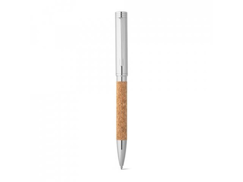 Roller s telom z nehrdzavejúcej ocele (90 % recyklovanej) a korku s klipom.Modrá náplň. Dodáva sa v korkovom darčekovom vrecúšku.