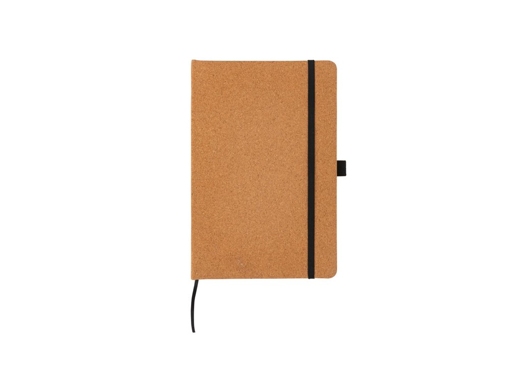 Poznámkový blok vo formáte A5 s tvrdou väzbou. Obal je vyrobený zo silného korku pre moderný vzhľad. Čierna elastická gumička, záložka a pútko na pero. Obsahuje 96 listov/192 strán A5 krémového linkovaného papiera o gramáži 70 g/m2.