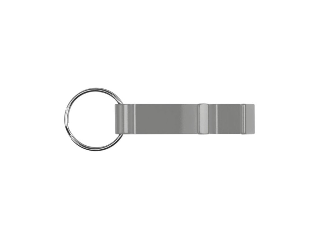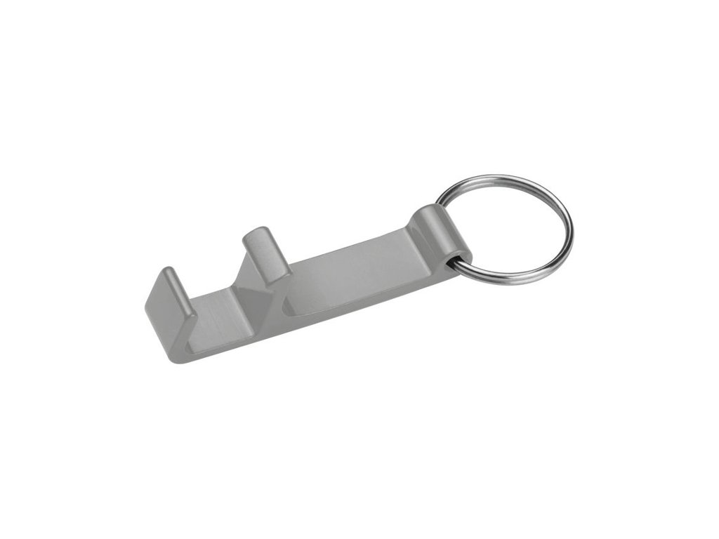 Kovová kľúčenka s otváračom fliaš a veľkým priestorom pre potlač. Obrátene je možné kľúčenku použiť ako držiak na mobil.