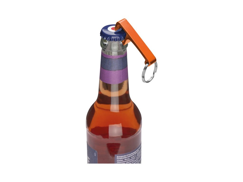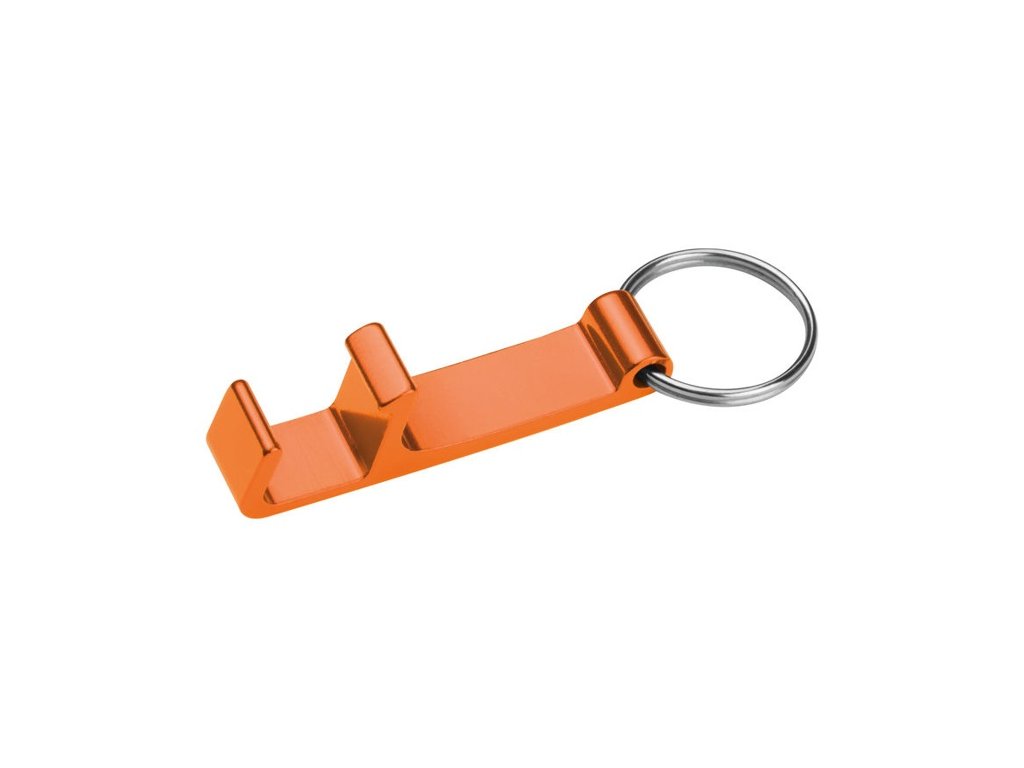 Kovová kľúčenka s otváračom fliaš a veľkým priestorom pre potlač. Obrátene je možné kľúčenku použiť ako držiak na mobil.