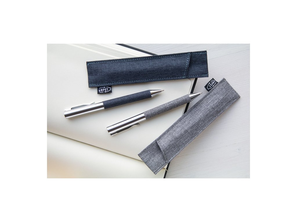 Kovové guľôčkové pero s twist otočným mechanizmom potiahnuté RPET polyesterom. V puzdre RPET zodpovedajúcej farby. S modrou náplňou.