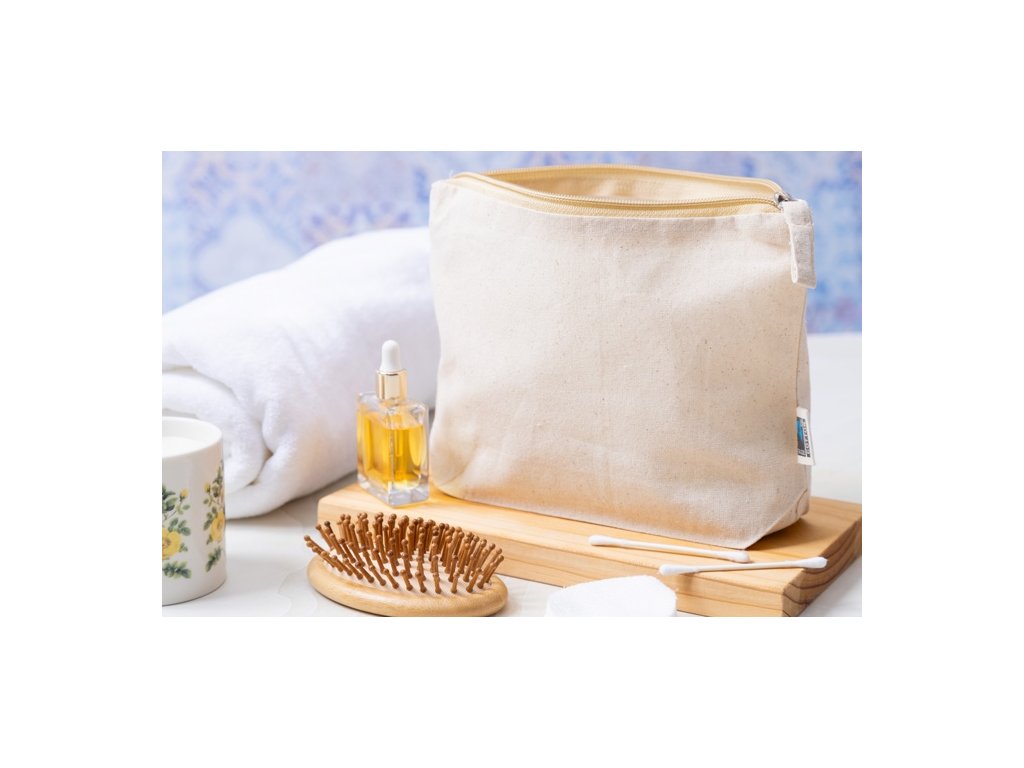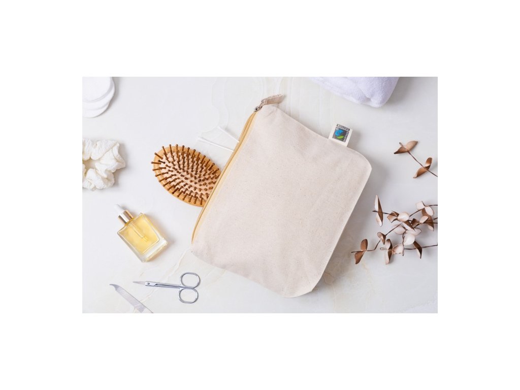 Fairtrade bavlnená kozmetická taštička na zips s výraznou Fairtrade etiketou. 100% bavlna Fairtrade, 180 g/m2.