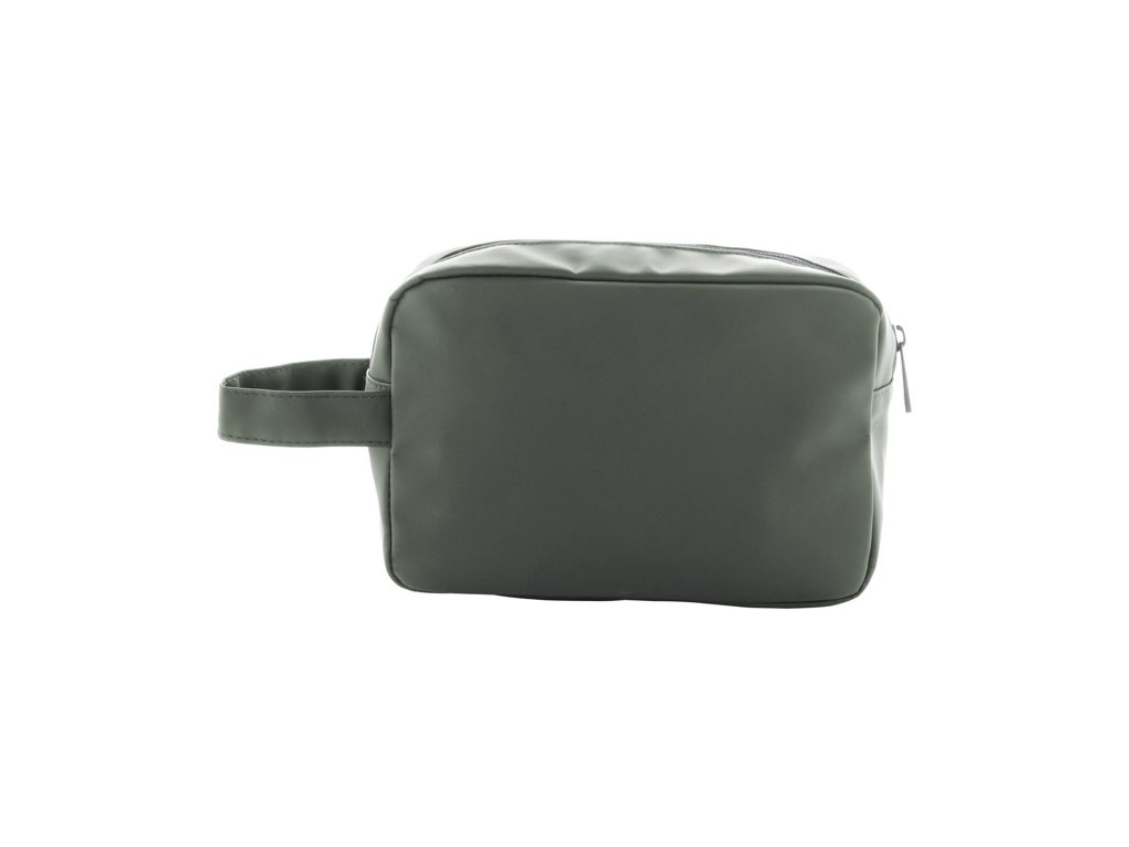 Kozmetická taštička z mäkkej recyklovanej PU kože s dvoma priehradkami na zips a uchom.