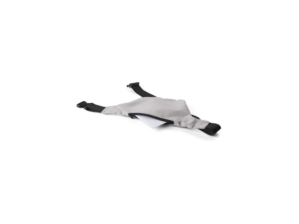 Polyesterová taška (600D) s jedným predným vreckom a jedným malým vreckom na zadnej strane. Obe vrecká sa dajú zapnúť na zips. S čiernym nastaviteľným popruhom s pevným zapínaním na pracku.