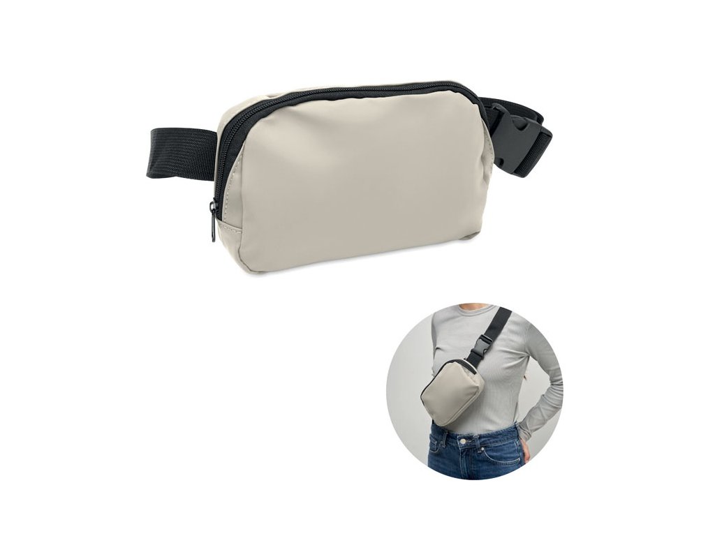 Ľadvinka alebo crossbody taška z mäkkého PU s podšívkou z 210D RPET polyesteru. 1 hlavné vrecko na zips, 1 zadné vrecko na zips a sieťovaná vnútorná priehradka.