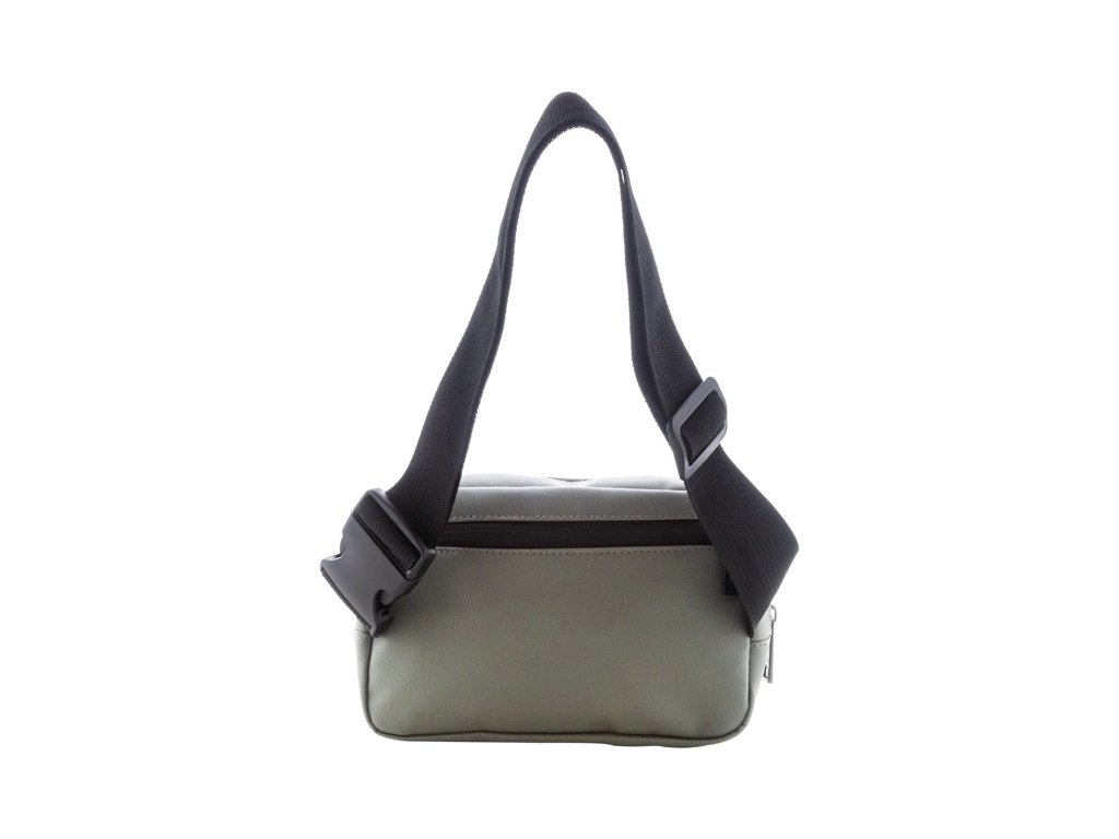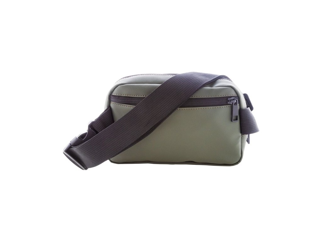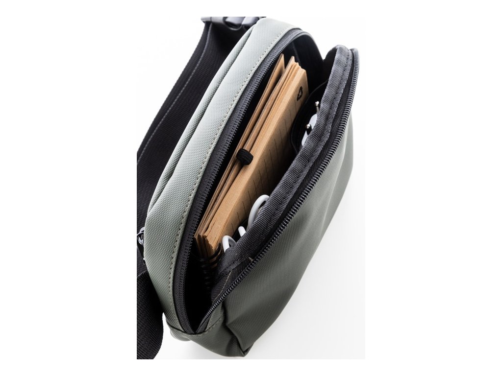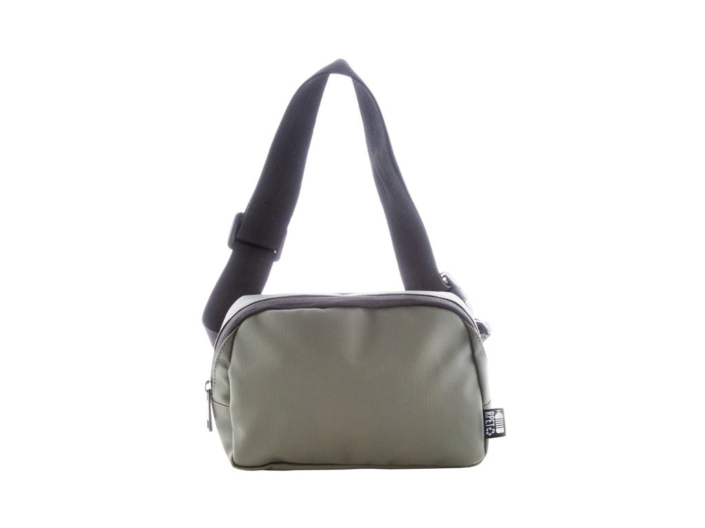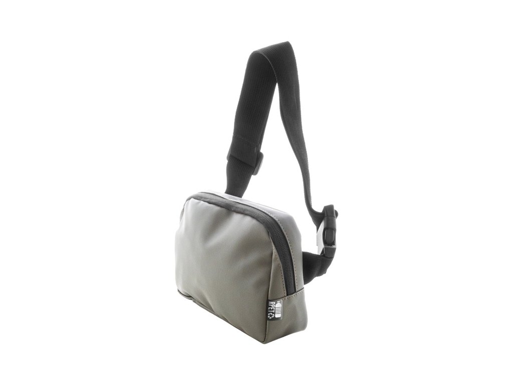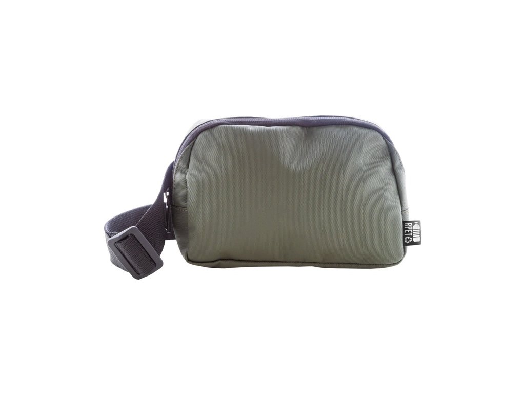 Vodotesná RPET oblička s 2 priehradkami na zips, sieťovanými vnútornými vreckami s organizérom a nastaviteľným popruhom. Polyester 600D RPET potiahnutý PU, s výrazným štítkom RPET.