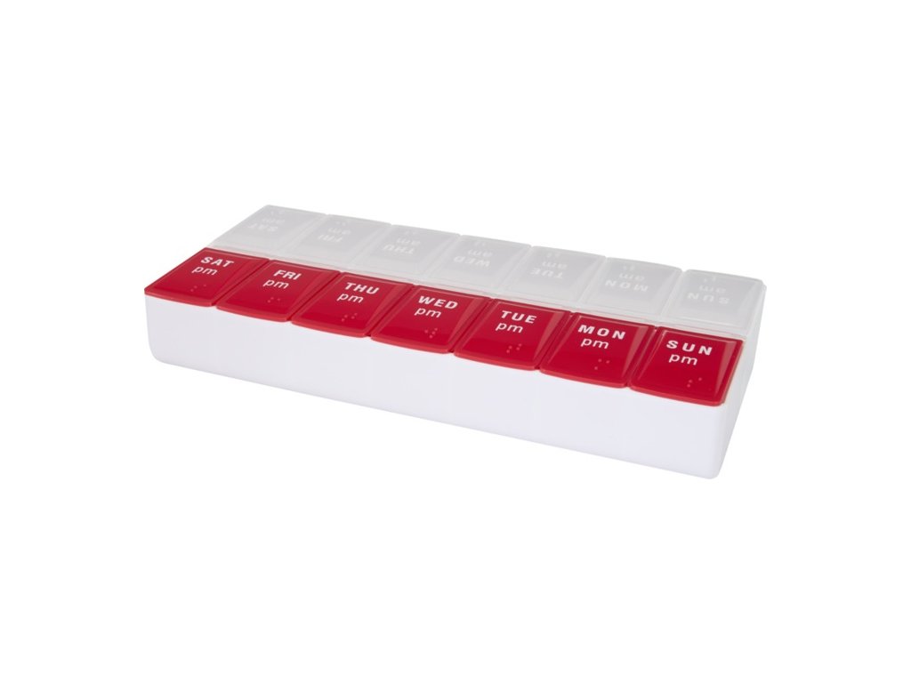 Krabička na lieky obsahuje oddelené priehradky na ranné aj popoludňajšie dávky, od pondelka do nedele, aby ste nikdy nevynechali dávku.