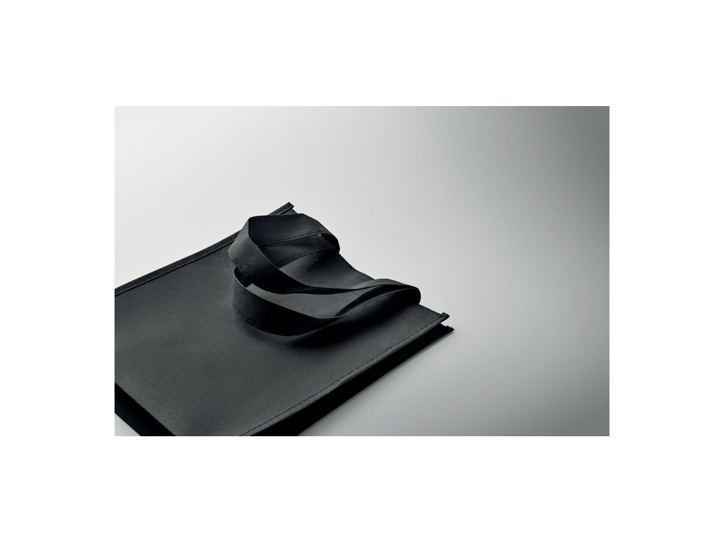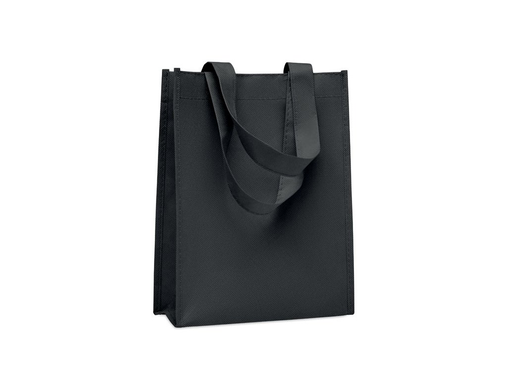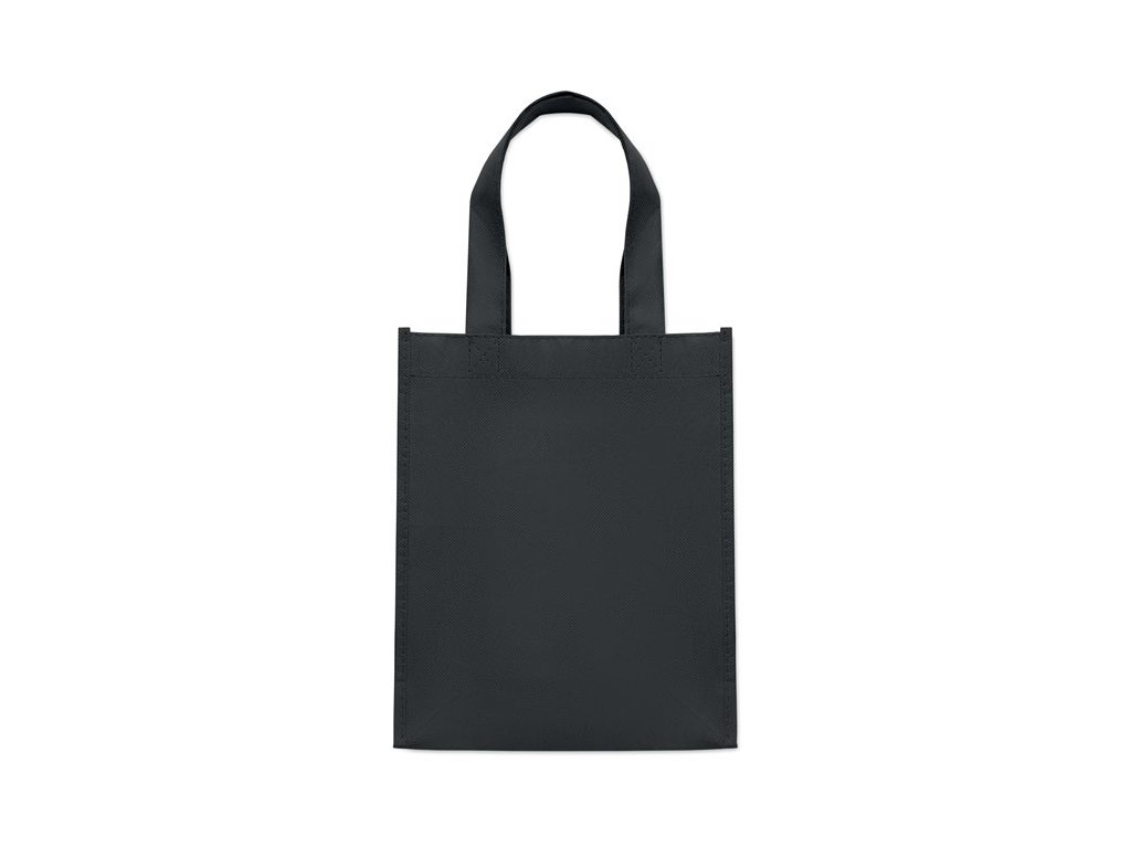 Malá darčeková taška z netkanej RPET tkaniny s krátkymi rúčkami a výstuhami.