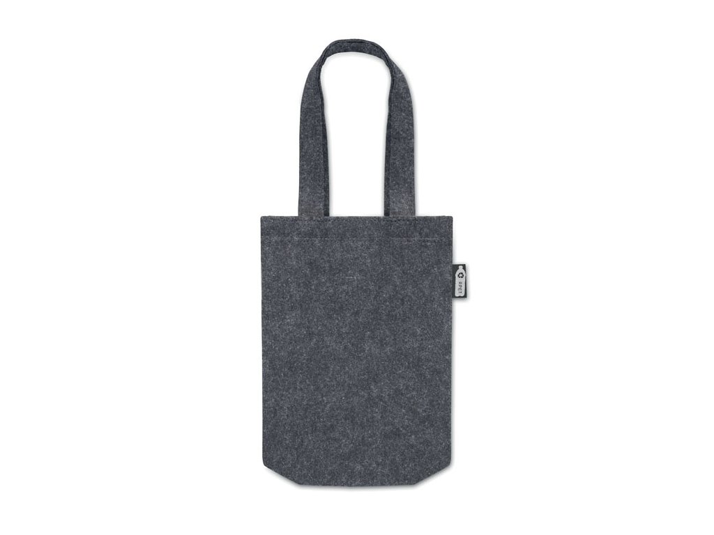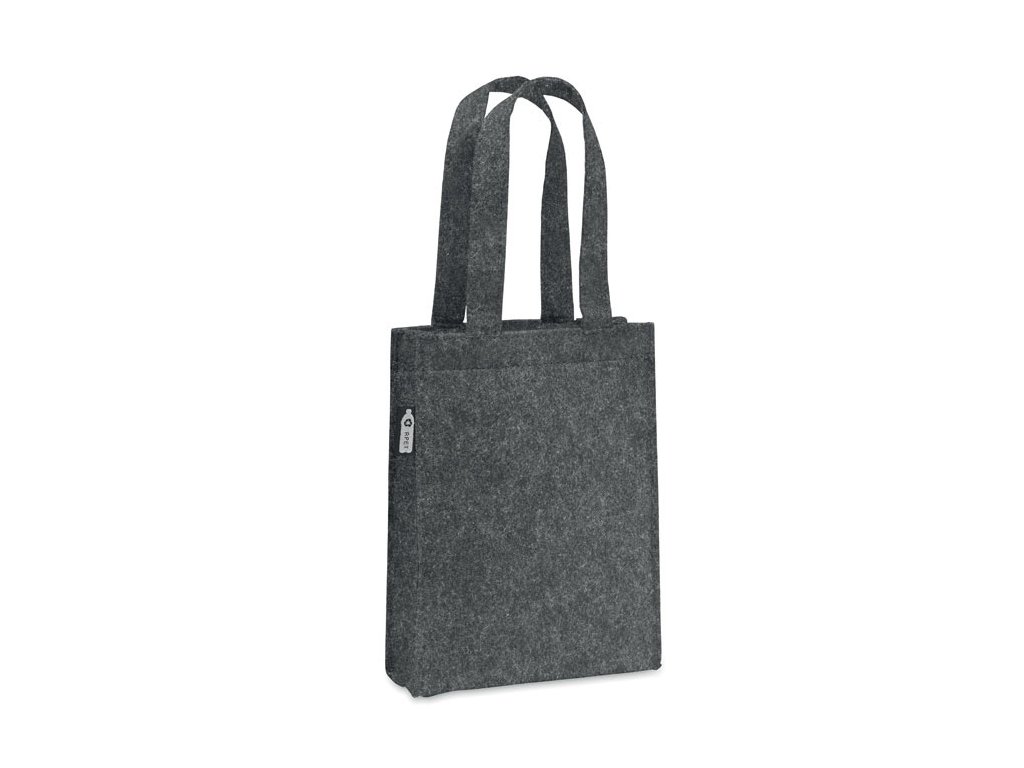 Malá RPET plstená darčeková taška s krátkymi rúčkami a spodným klinom. Hrúbka plsti: 1 mm.