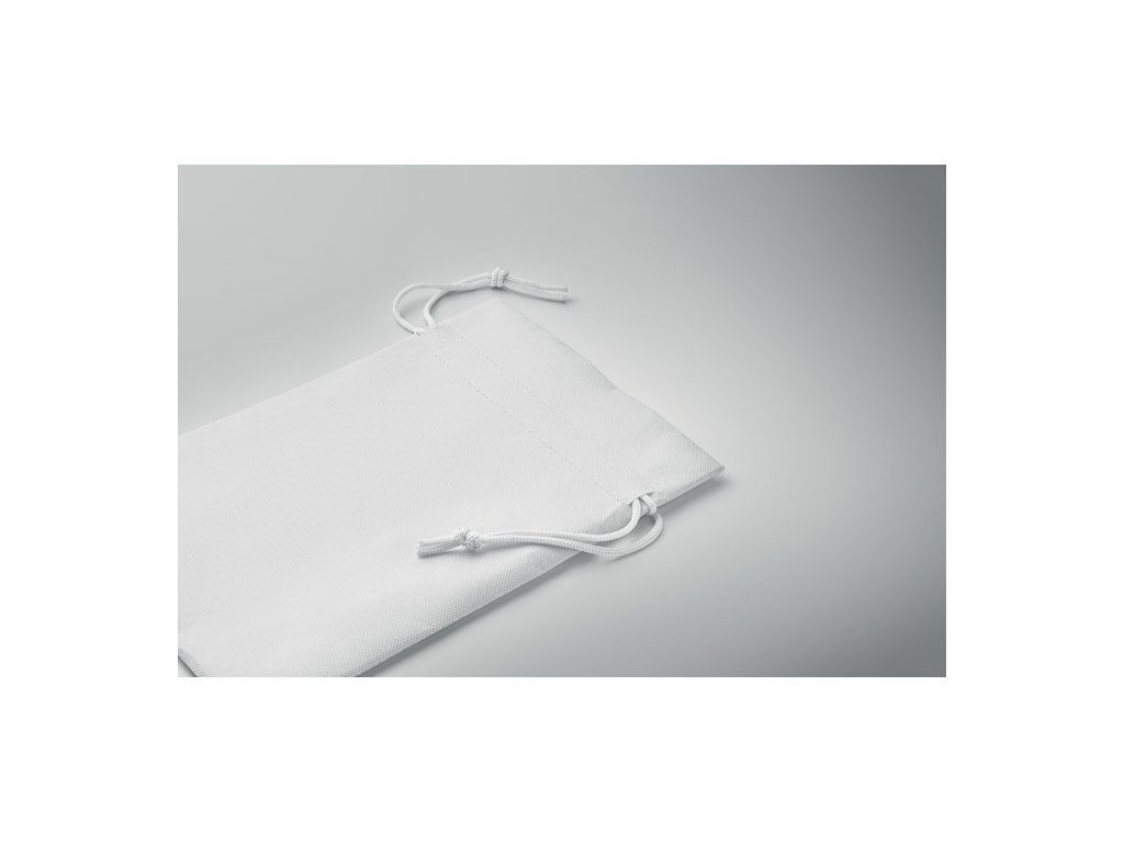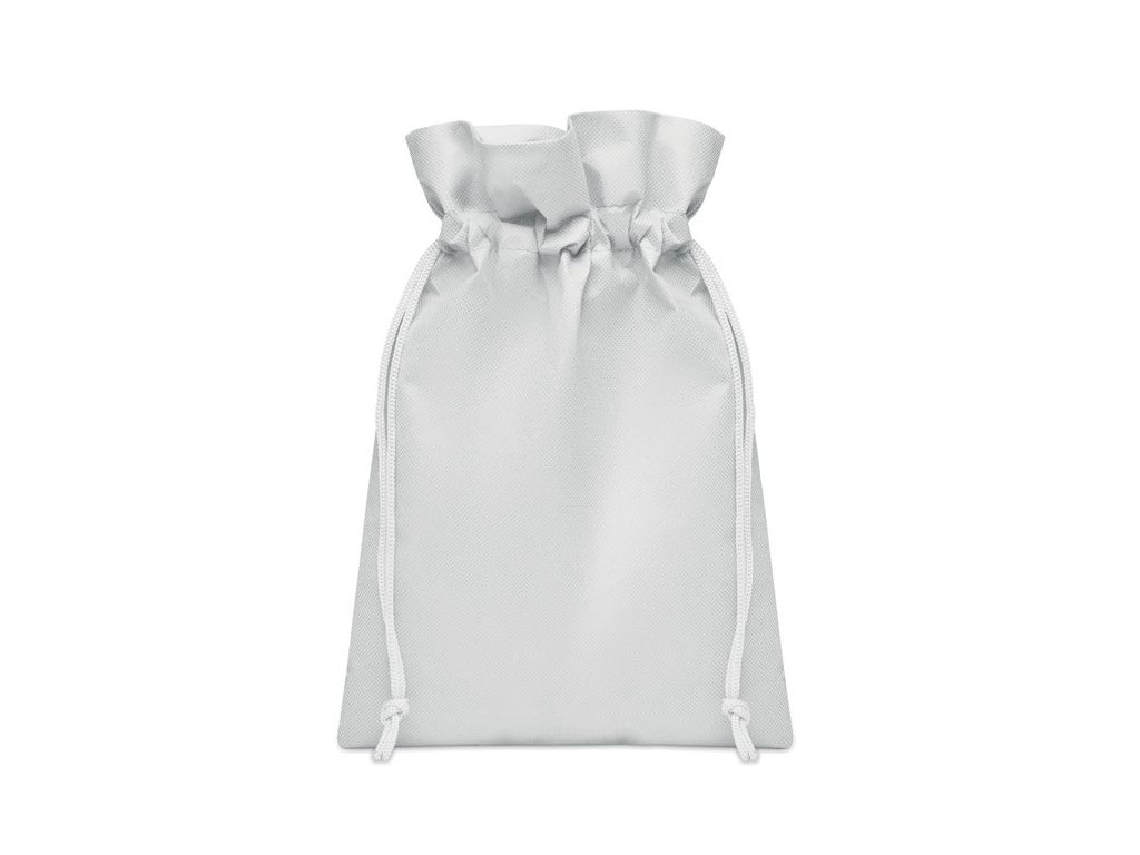 Malé darčekové vrecko so sťahovacou šnúrkou z netkanej RPET tkaniny. Rozmery cca 20x30 cm.