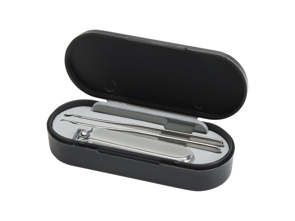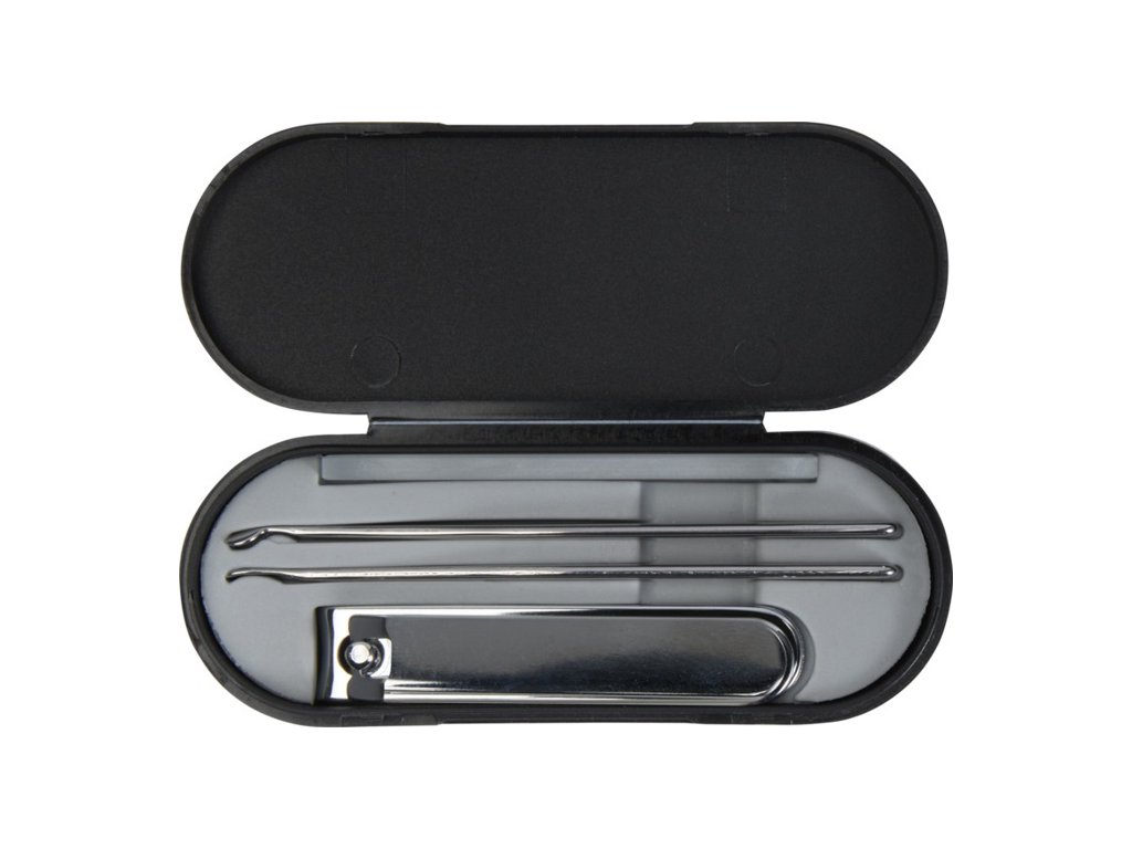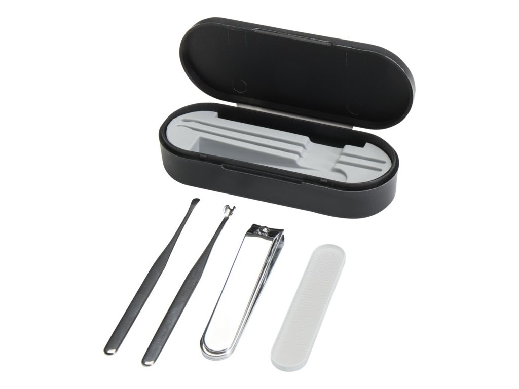 Sada na manikúru obsahuje hladký sklenený pilník na nechty, odolné klieštiky na nechty, presnú tyčinku na nechtovú kožičku a ušnú kyretu pre všestrannú starostlivosť.