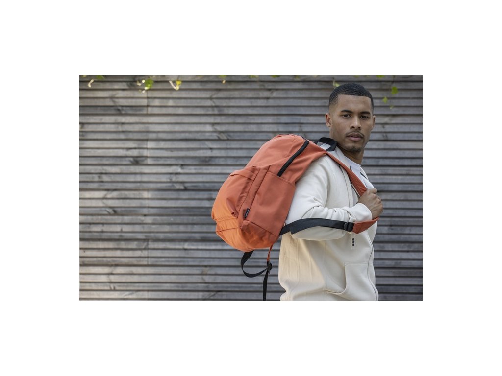 Mestský batoh na notebook z vodoodpudivého RPET GRS. Objem 16 litrov, polstrovaná priehradka pre notebooky do uhlopriečky 14?. Organizačné vrecká,dve bočné vrecká a predné vrecko na zips.