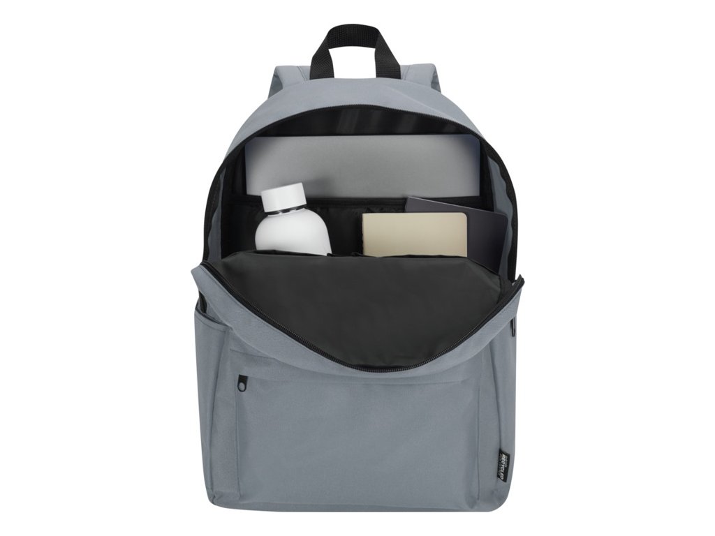 Mestský batoh na notebook z vodoodpudivého RPET GRS. Objem 16 litrov, polstrovaná priehradka pre notebooky do uhlopriečky 14?. Organizačné vrecká,dve bočné vrecká a predné vrecko na zips.