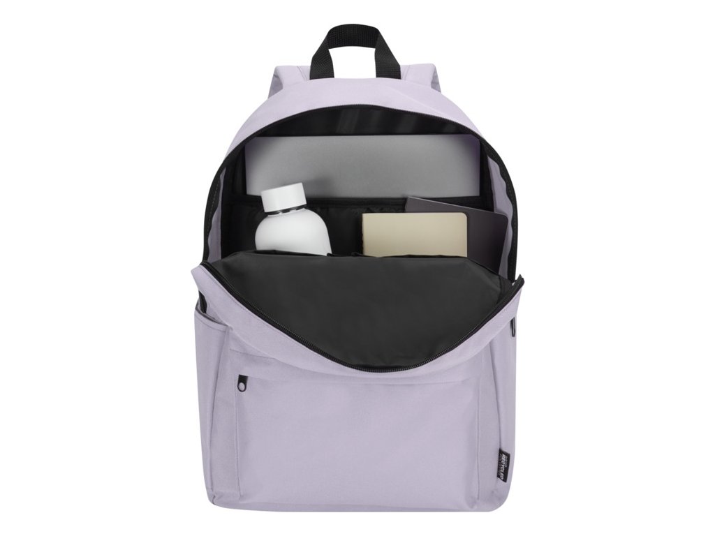 Mestský batoh na notebook z vodoodpudivého RPET GRS. Objem 16 litrov, polstrovaná priehradka pre notebooky do uhlopriečky 14?. Organizačné vrecká,dve bočné vrecká a predné vrecko na zips.