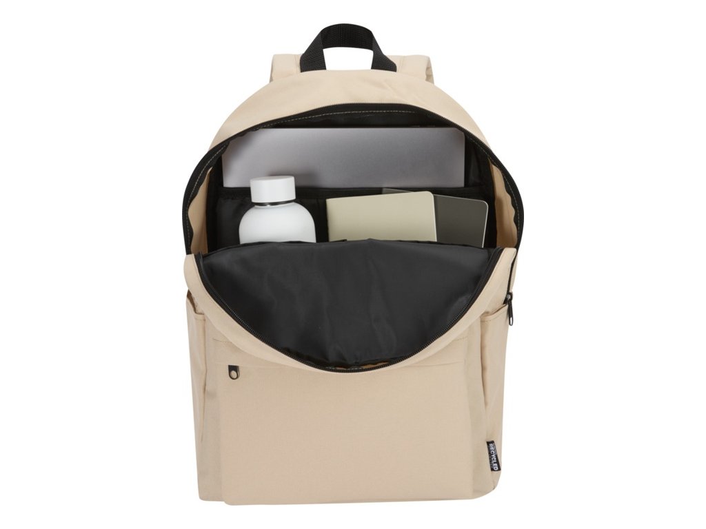 Mestský batoh na notebook z vodoodpudivého RPET GRS. Objem 16 litrov, polstrovaná priehradka pre notebooky do uhlopriečky 14?. Organizačné vrecká,dve bočné vrecká a predné vrecko na zips.