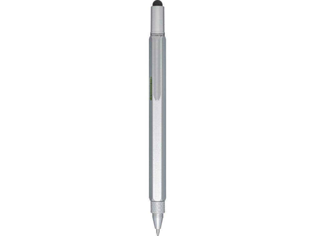 Hliníkové multifunkčné guličkové pero čiastočne vyrobené z recyklovaných materiálov s obojstranným pravítkom, páčkou, skrutkovačom, pomôckou na meranie uhla sklonu a čiernym stylusom z gumy. Čierna náplň. Dĺžka písania: 400 metrov. Rozmer hrotu: 1,0 mm.