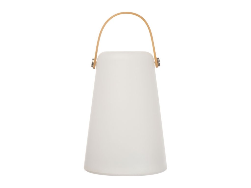 Nabíjateľná lampa s 800 mAh batériou, popruhom na prenášanie a teplým bielym svetlom. Ideálne pre útulné osvetlenie a atmosférické akcenty. Vašu reklamu vytlačíme na lampu.