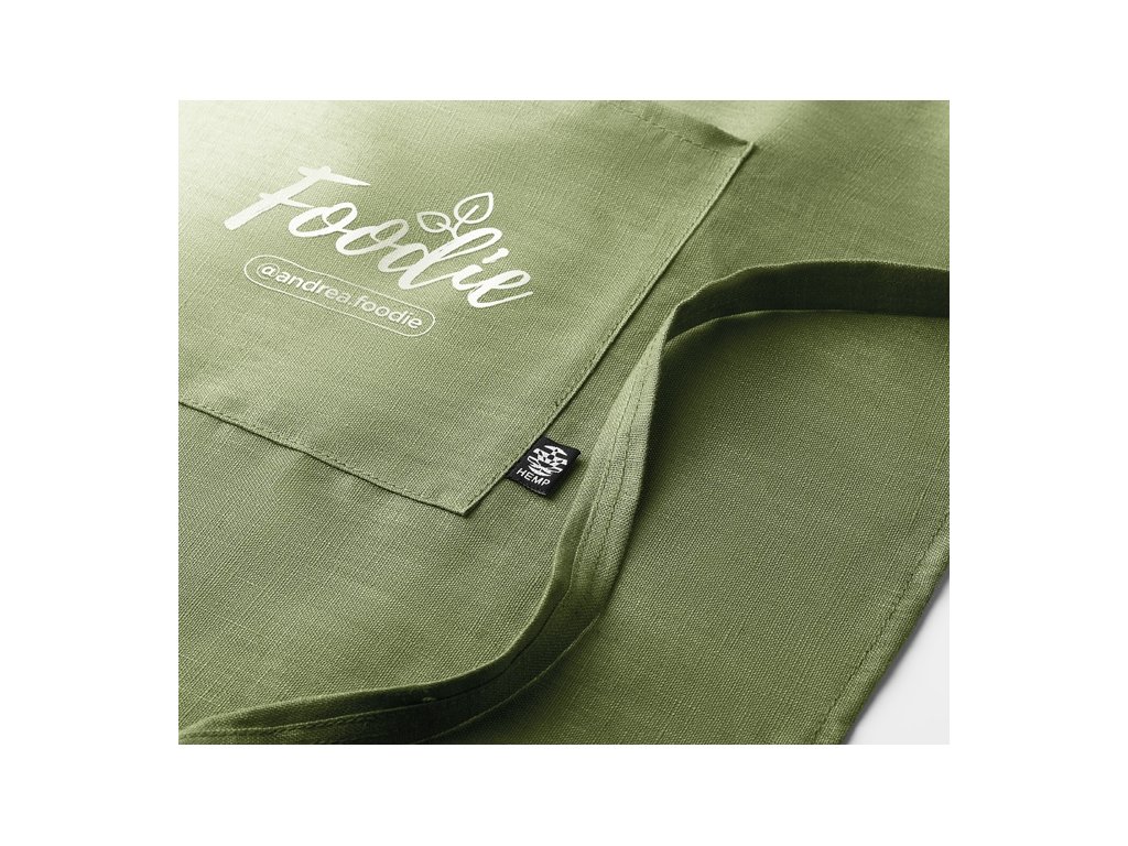 nastaviteľná kuchynská zástera z 200 gr / m? konopnej látky. 2 predné vrecká.