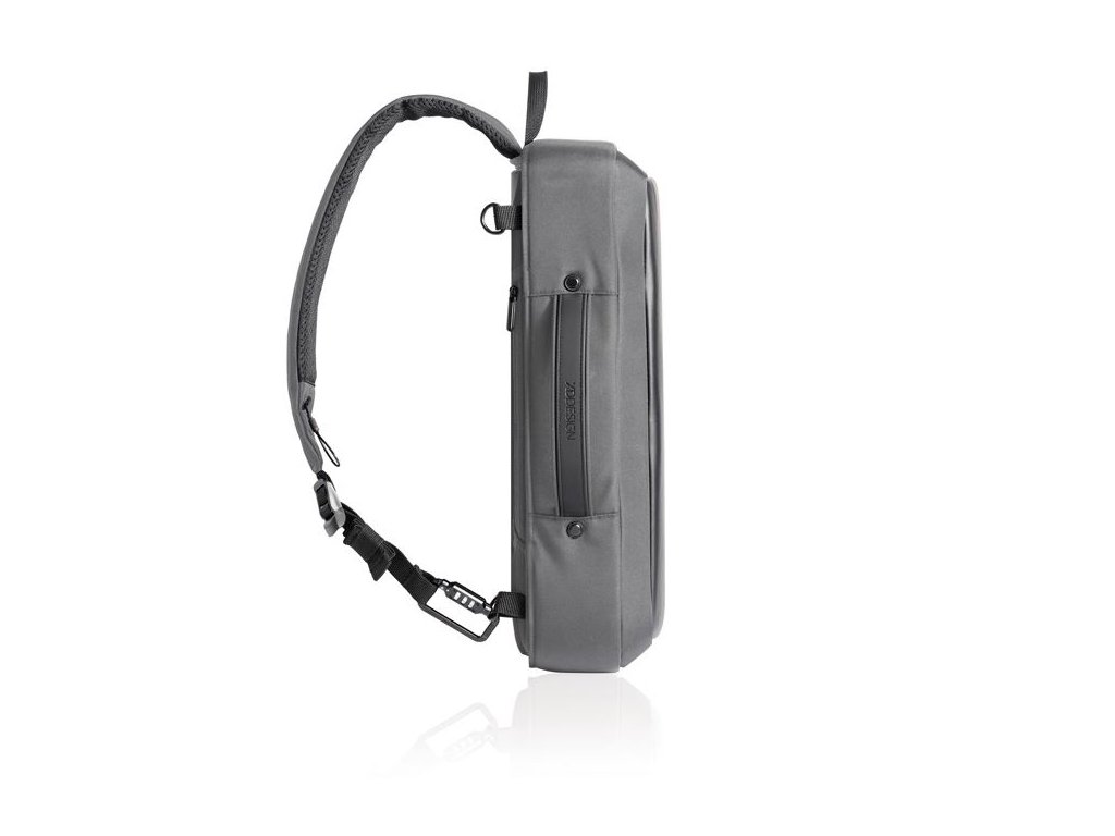 Špeciálny systém skrytých zipsov a vreciek, neprerezateľný materiál, reflexné prvky. Polstrované priehradky pre až 16" notebook a 10" tablet. Vstavaný kovový rám, bezpečnostná karabína pre uchytenie batohu, popruh na kufor. AWARE™. Podiel recyklátu: 33%.