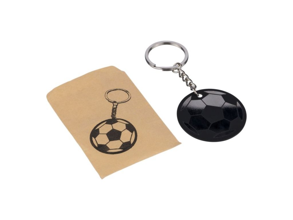 Kľúčenka z recyklovanej nehrdzavejúcej ocele s pogumovaným povrchom a kovovým krúžkom v dizajne futbalovej lopty. Gravírované logo odhaľuje lesklý zrkadlový efekt. Jednotlivo balená v obálke z kraftového papiera.