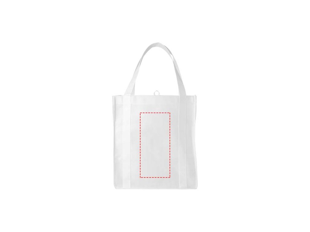 Otvorený hlavný priestor so spevneným dnom. Nosná výška popruhov 25,4 cm. Taška je recyklovateľná. Netkaný polypropylén 80 g/m2.