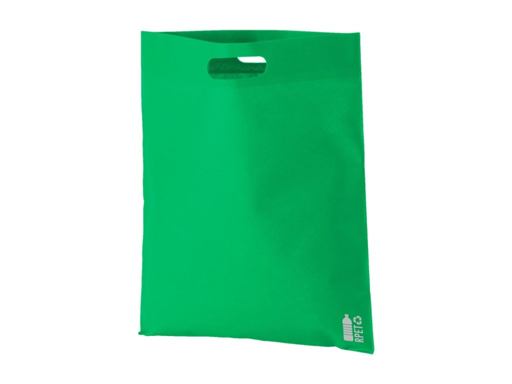 Nákupná taška z netkanej textílie RPET s vysekávanými ušami, 70 g/m2. S výrazným znakom RPET.