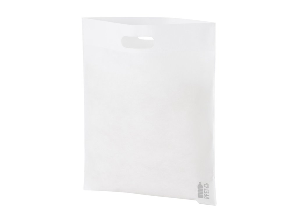 Nákupná taška z netkanej textílie RPET s vysekávanými ušami, 70 g/m2. S výrazným znakom RPET.