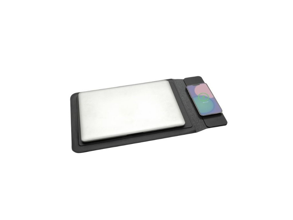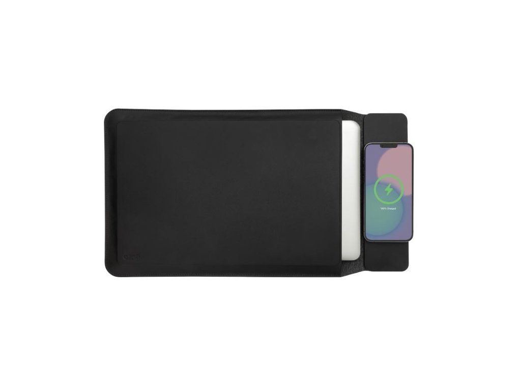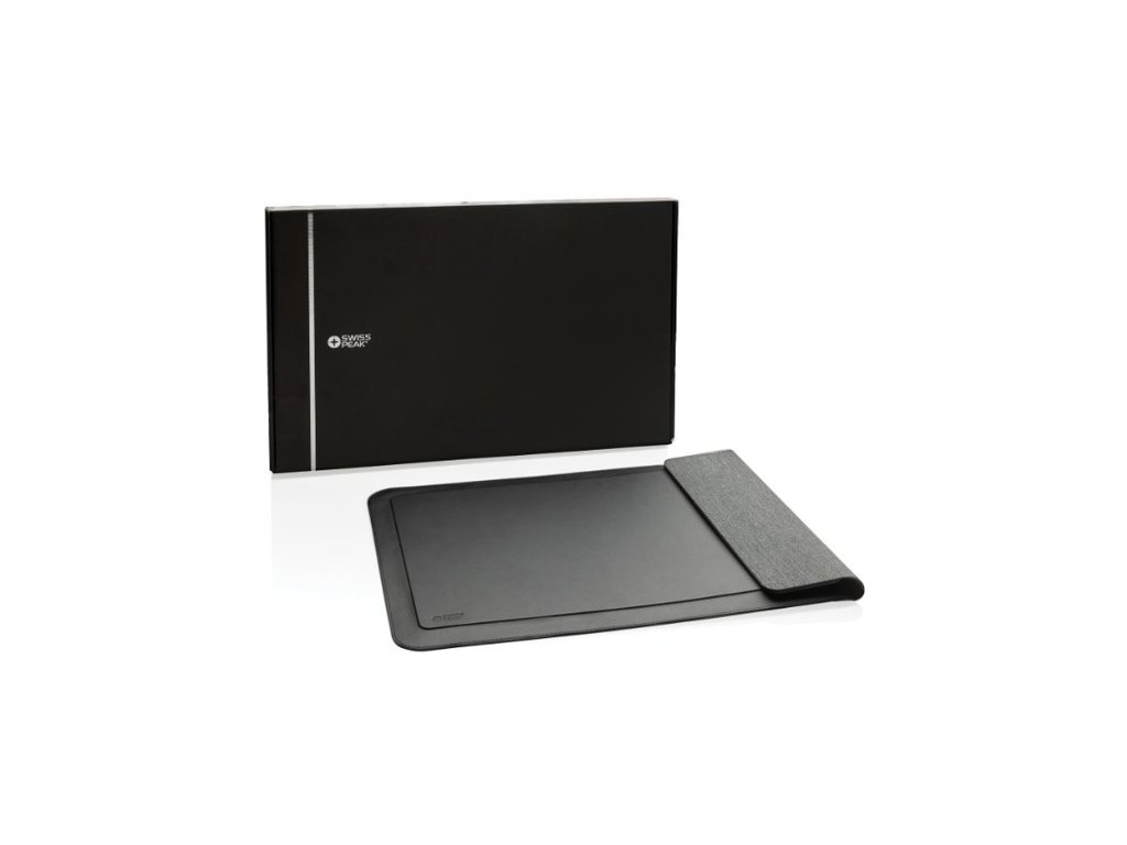 Obal na notebook Swiss Peak RCS z recyklovaného polyesteru s 15W magnetickým nabíjaním pre notebooky 14-15.6". Magnetický uzáver, bezdrôtové 15W magnetické nabíjanie. 120cm čierny RCS 9V/2A. Podiel recklátu: 6%