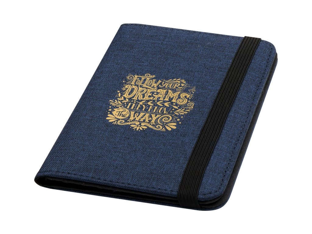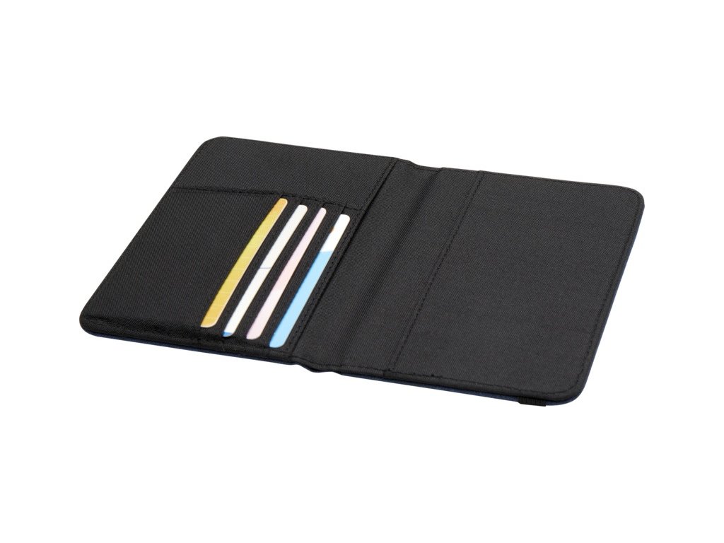 Taška na doklady RFID z recyklovaného polyesteru má vyhradené vrecká na doklady, lístky, platobné karty a ďalšie položky. Dodáva sa s elastickým páskovým zatváraním, vďaka ktorému je obsah v bezpečí.