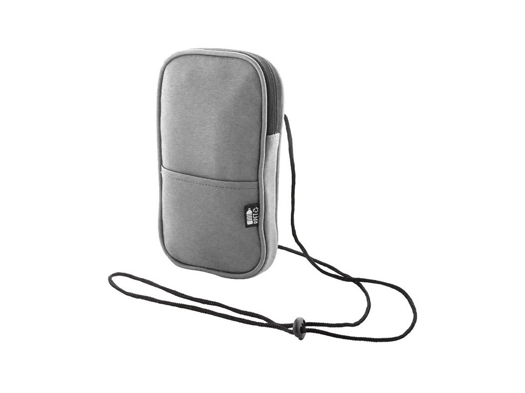 Vodeodolná RPET crossbody taška na mobilný telefón s hlavnou priehradkou na zips, predným vreckom a nastaviteľnou šnúrkou. Polyester RPET 600D potiahnutý PU, s výrazným štítkom RPET.