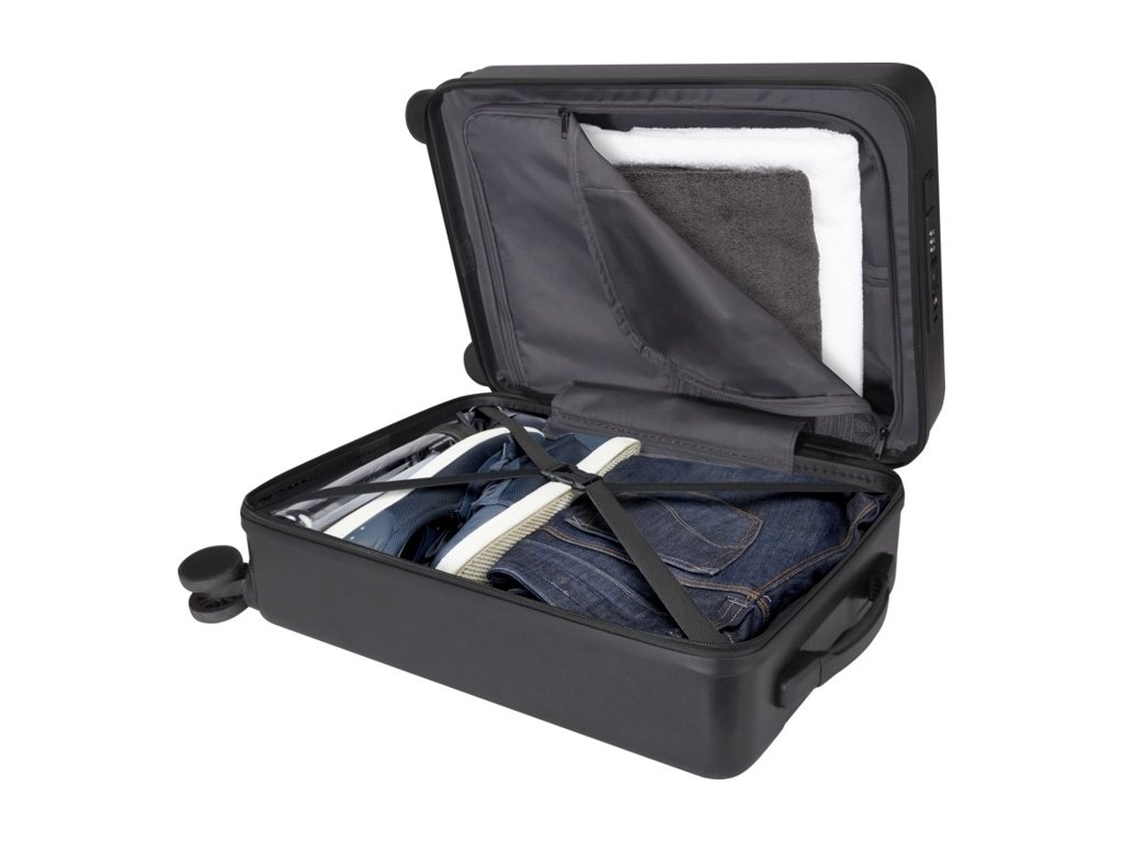 20? kufor Rover Pro s oddielom na notebook s predným otváraním a integrovaným USB portom. Vyrobený z recyklovaného plastu GRS odolného proti nárazom a kvalitnej RPET podšívky. TSA zámok pre hlavnú aj prednú priehradku, 360-stupňové dvojité kolieska.