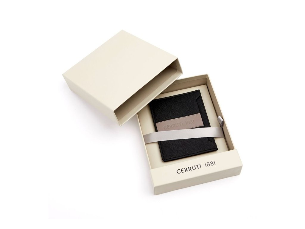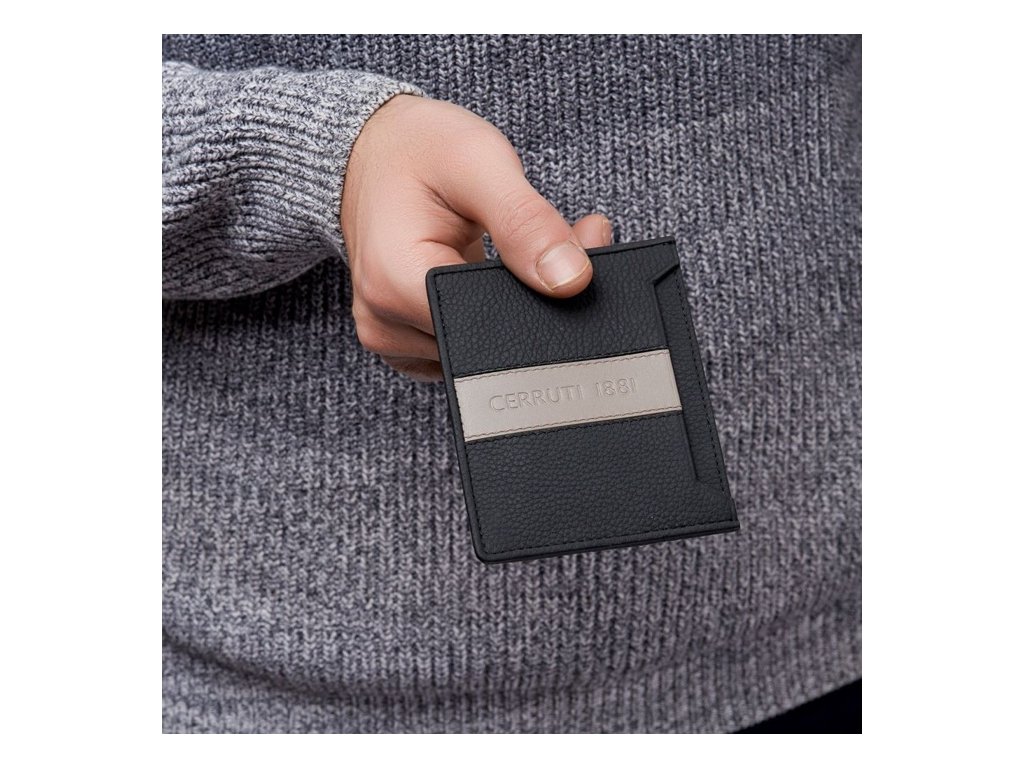 Puzdro na karty "Delano" je vyrobené zo zrnitej kože, ktorá má matnú textúru. Podpisové logo je diskrétne vyrazené na stredovom páse z hladkej kože, čím vytvára vkusný kontrast.