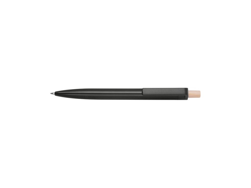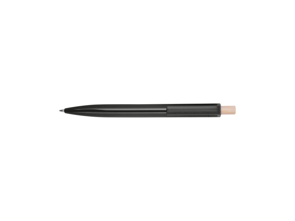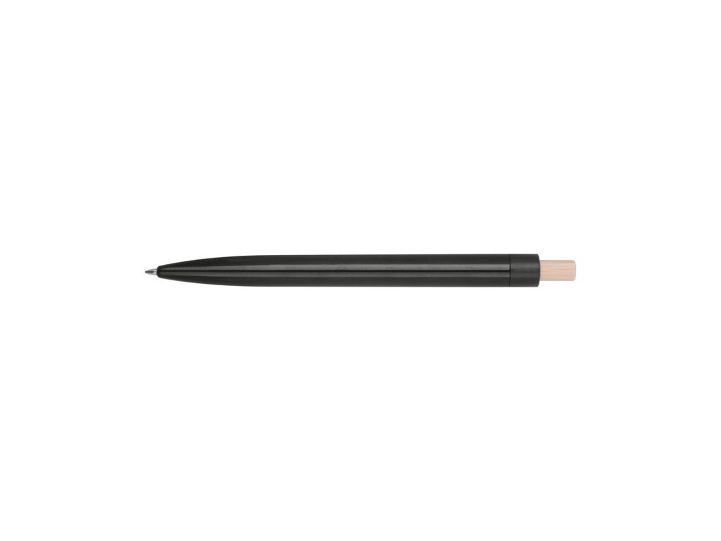 Guľôčkové pero vyrobené z recyklovaného ABS s tlačidlom z bambusu. Obsahuje modrú plastovú náplň.