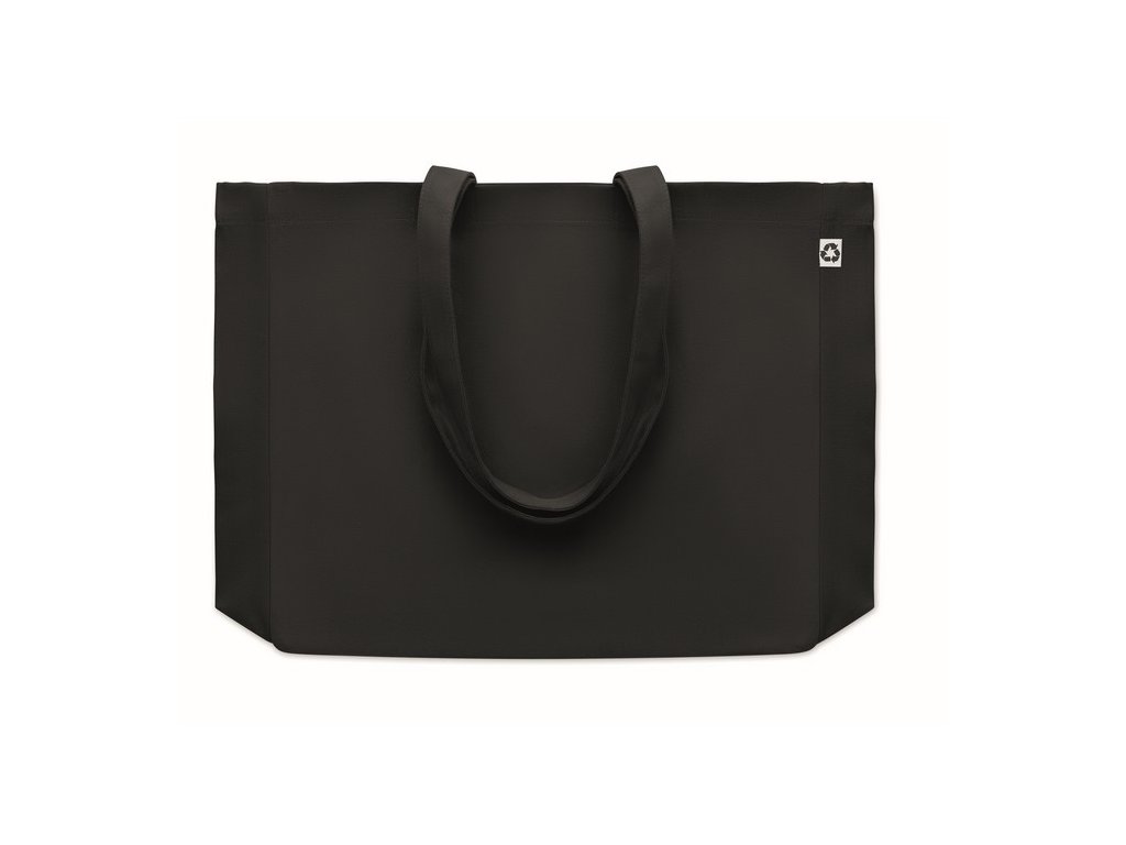 Nákupná alebo plážová taška z recyklovaného plátna s dlhými ušami a klinom. S gramážou 280 gr/m?. 50% bavlna a 50% recyklovaná bavlna.