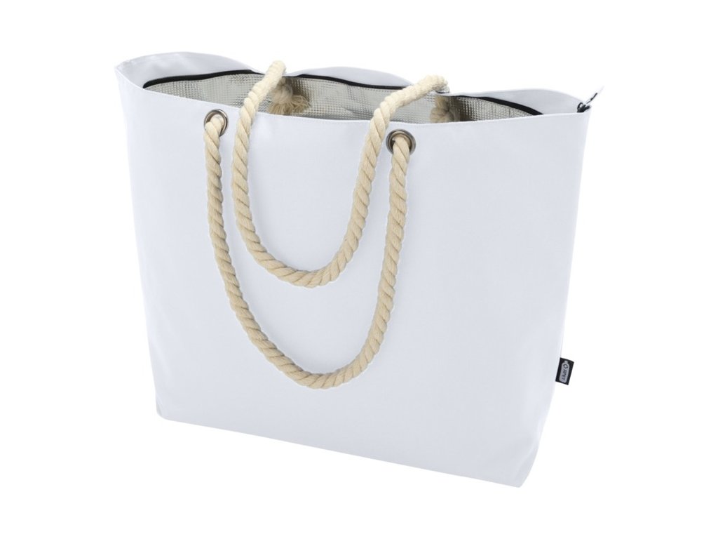 Chladiaca taška Panama z recyklovaného polyesteru s certifikáciou GRS má veľkú hlavnú priehradku na zips, vnútro z vysoko kvalitnej hliníkovej fólie a bavlnené šnúry. Objemová kapacita: 23 litrov. Nosnosť do 10 kg. Neobsahuje PVC.