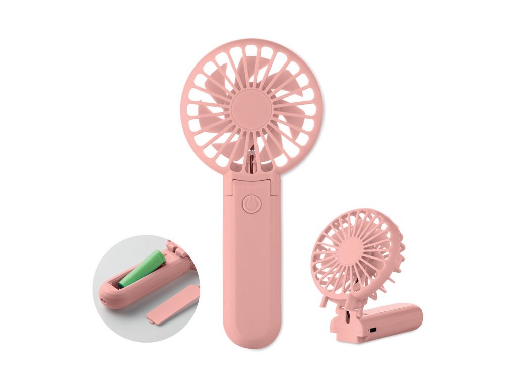 Prenosný skladací ventilátor z ABS plastu s 3 nastaveniami rýchlosti. Môže sa používať ako ručný alebo stolový ventilátor. Obsahuje 1 vymeniteľnú a nabíjateľnú lítiovú batériu 14500 s kapacitou 500 mAh.