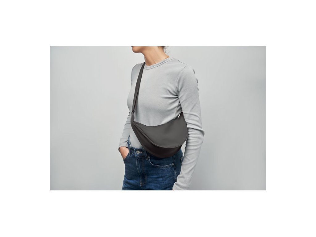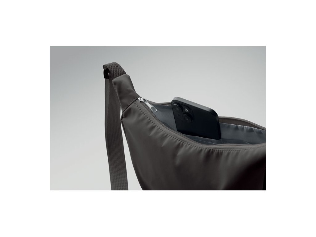 Polmesiacová crossbody kabelka z materiálu Oxford 400D a podšívky z RPET 210D. Jedno hlavné vrecko na zips a 2 vnútorné vrecká.