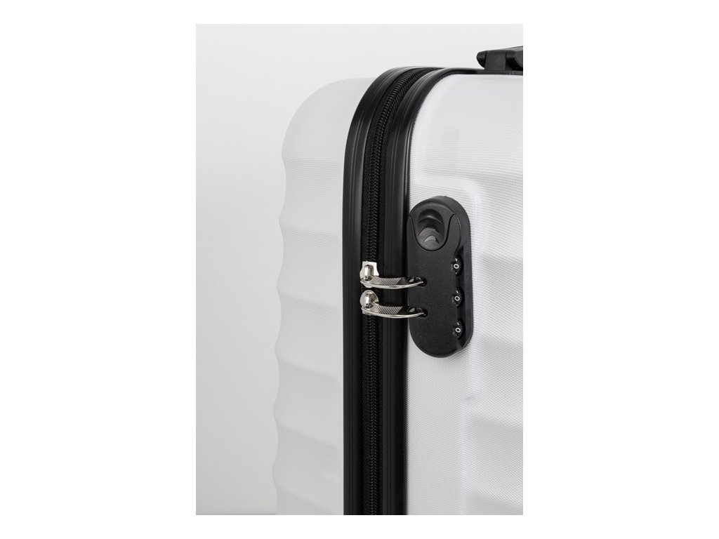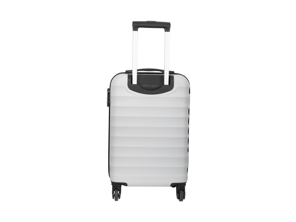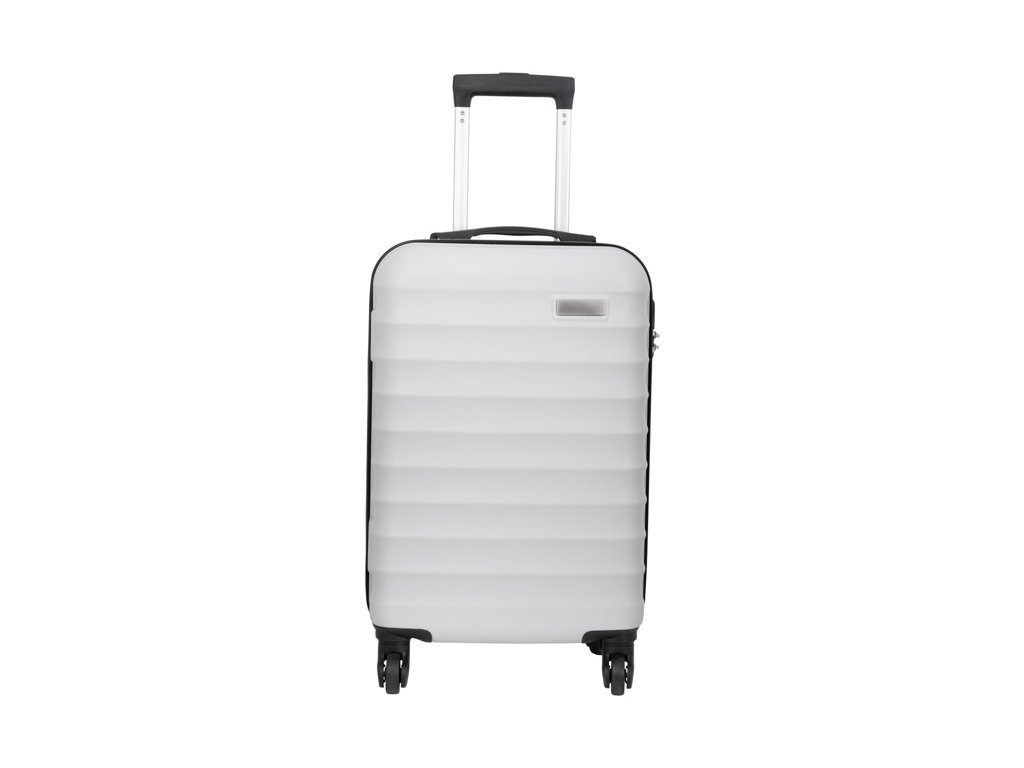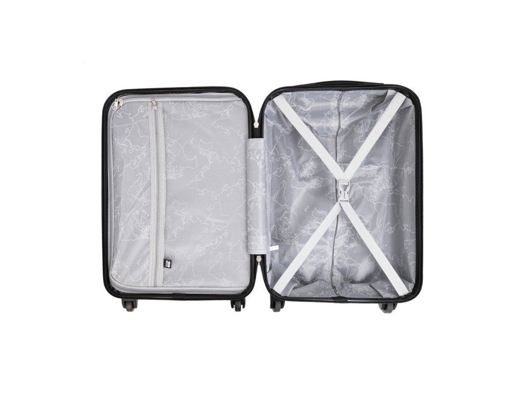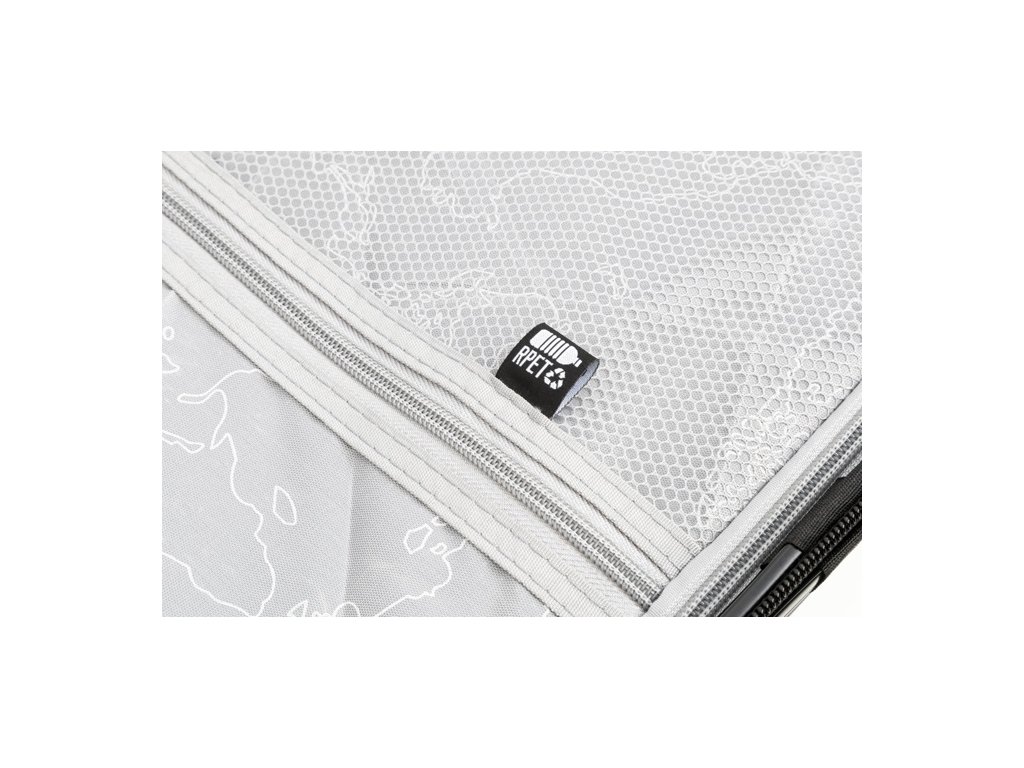 19-palcový príručný kufor z tvrdého materiálu z RPET so 4 kolieskami, teleskopickou rukoväťou a kombinovaným zámkom TSA s RPET vnútornou podšívkou a elastickými popruhmi s kovovou doštičkou pre gravírovanie loga.