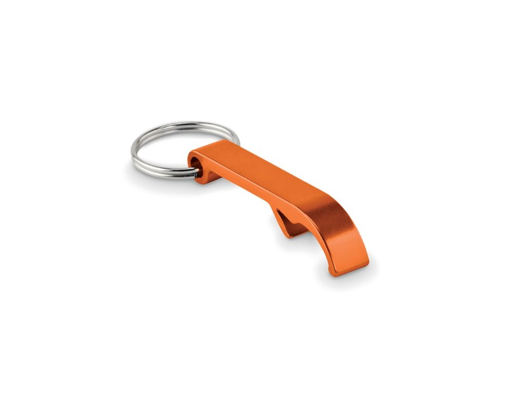 Otvárač na fľaše s kľúčenkou z recyklovaného hliníka s lesklou povrchovou úpravou.