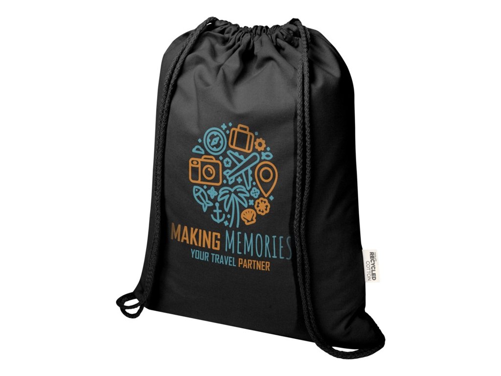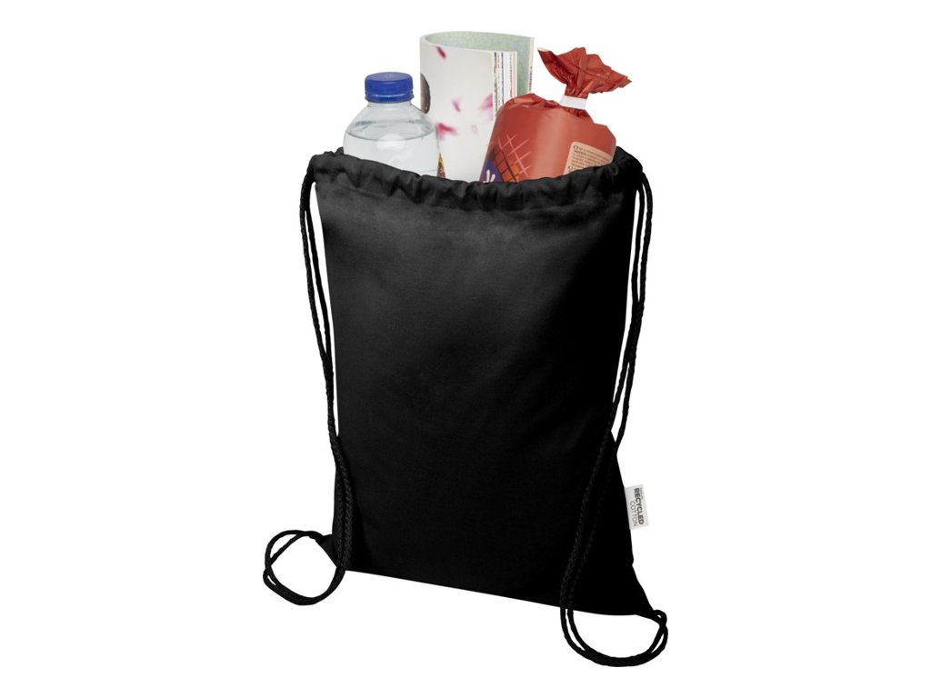 Sťahovacie vrecúško zo 60% z recyklovanej bavlny GRS a zo 40% z GRS RPET. Sťahovacia šnúrka uľahčuje otváranie a zatváranie a bavlnený materiál o gramáži 140 g/m2 je pevný a odolný. Vyrobené v Indii. Nosnosť do 5 kg. Objem: 5 litrov.