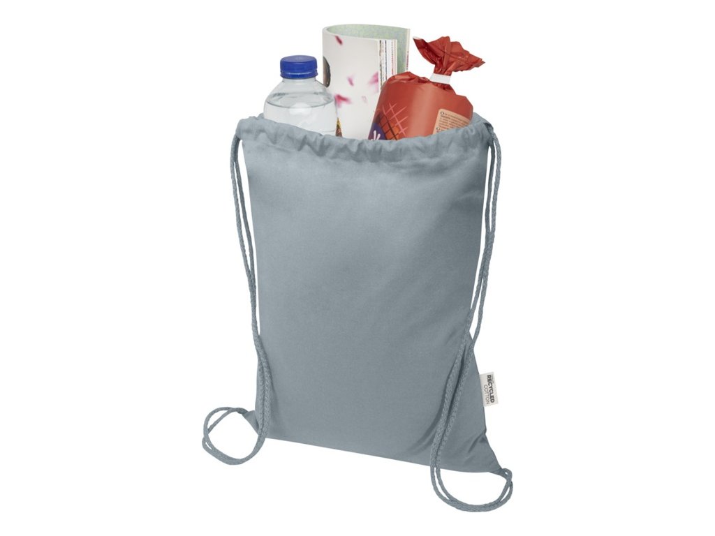 Sťahovacie vrecúško zo 60% z recyklovanej bavlny GRS a zo 40% z GRS RPET. Sťahovacia šnúrka uľahčuje otváranie a zatváranie a bavlnený materiál o gramáži 140 g/m2 je pevný a odolný. Vyrobené v Indii. Nosnosť do 5 kg. Objem: 5 litrov.