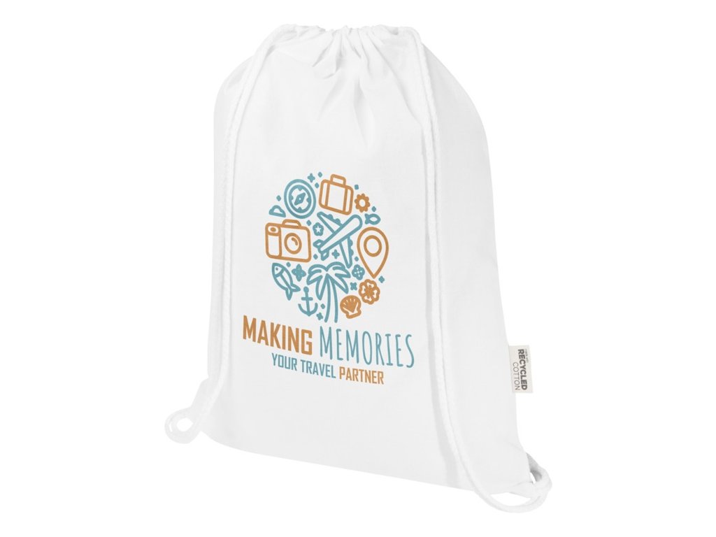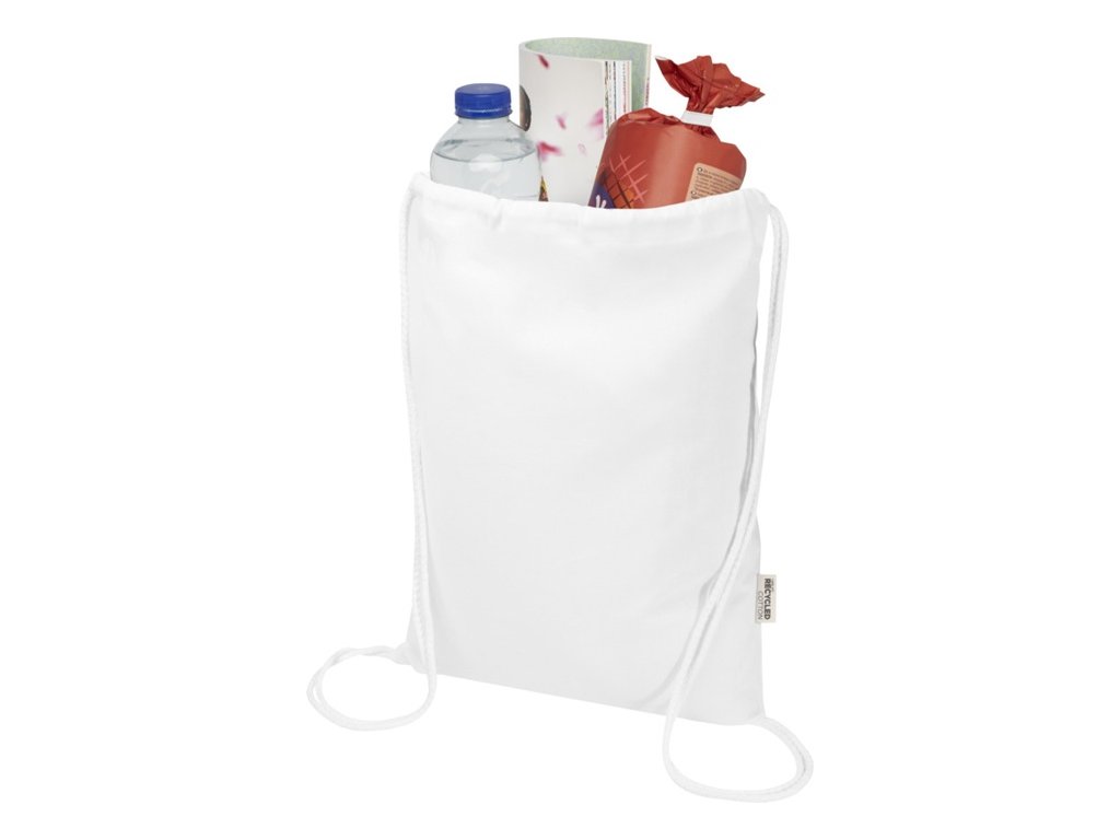 Sťahovacie vrecúško zo 60% z recyklovanej bavlny GRS a zo 40% z GRS RPET. Sťahovacia šnúrka uľahčuje otváranie a zatváranie a bavlnený materiál o gramáži 140 g/m2 je pevný a odolný. Vyrobené v Indii. Nosnosť do 5 kg. Objem: 5 litrov.