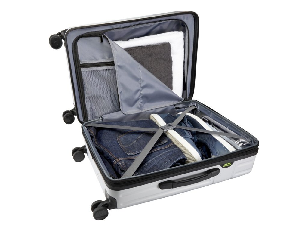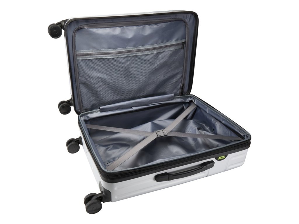 Dvojitý hliníkový rúrkový rám, nárazuvzdorný materiál a systém otáčania všetkých 4 kolies o 360 stupňov uľahčujúci mobilitu. Integrovaný kombinovaný zámok TSA, kompresné popruhy a priehradky na zips vo vnútri.