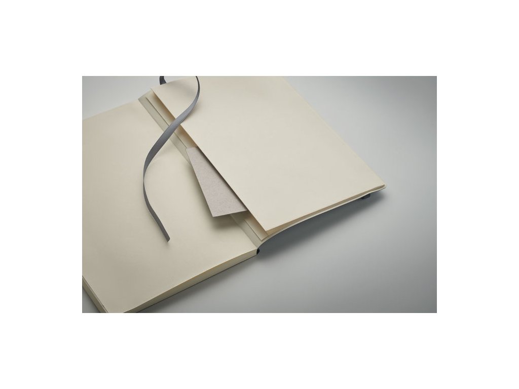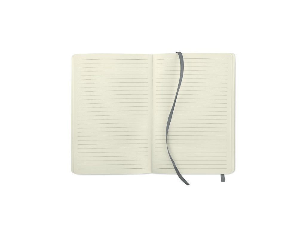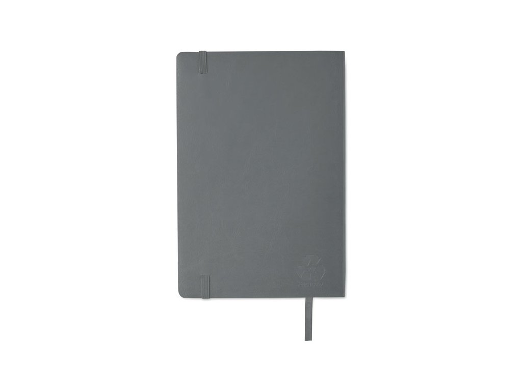Zápisník A5 s mäkkým obalom z recyklovaného PU (81 % recyklovaného polyesteru a 19 % PU). 160 linajkových strán (80 listov recyklovaného papiera). Gumička a stužka v rovnakej farbe. Rozšíriteľné vnútorné vrecko v zadnej časti.