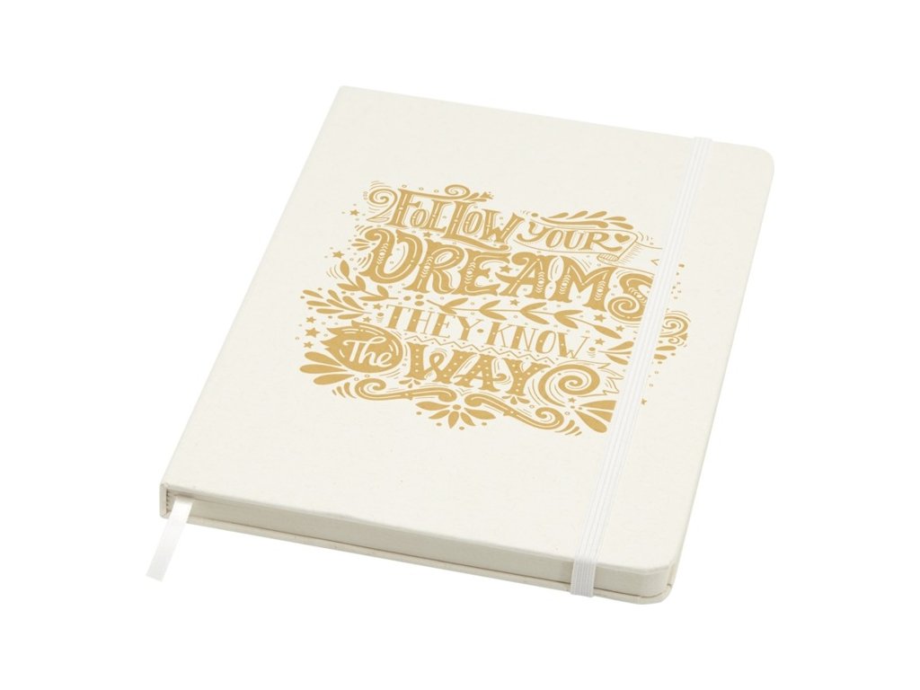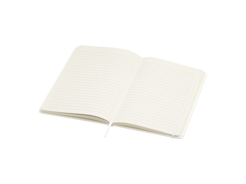Zápisník s pevnou obálkou Bass A5 obsahuje 80 linkovaných listov papiera s gramážou 80 g/m2 a je vyrobený z recyklovaných krabíc od mlieka.