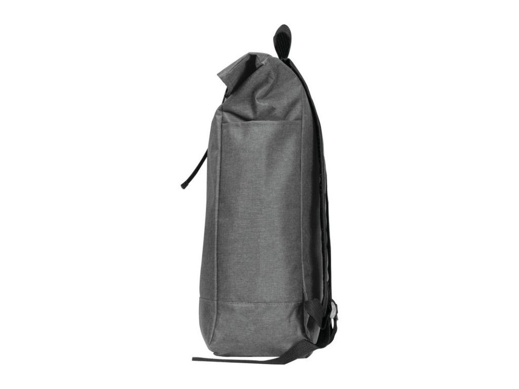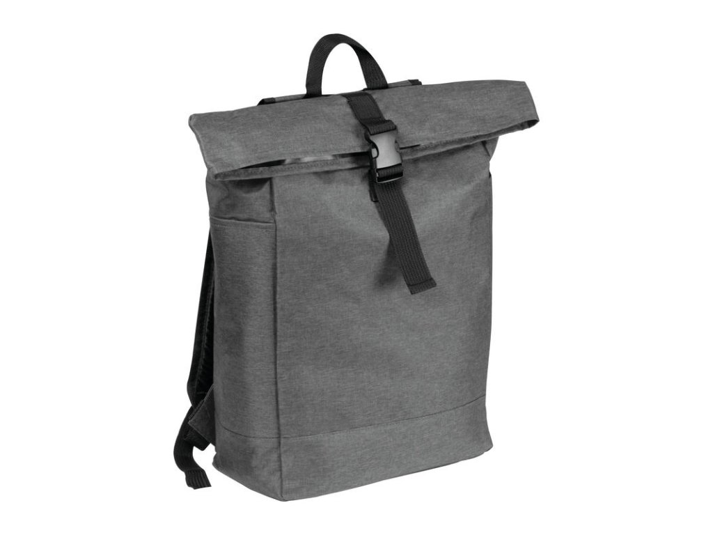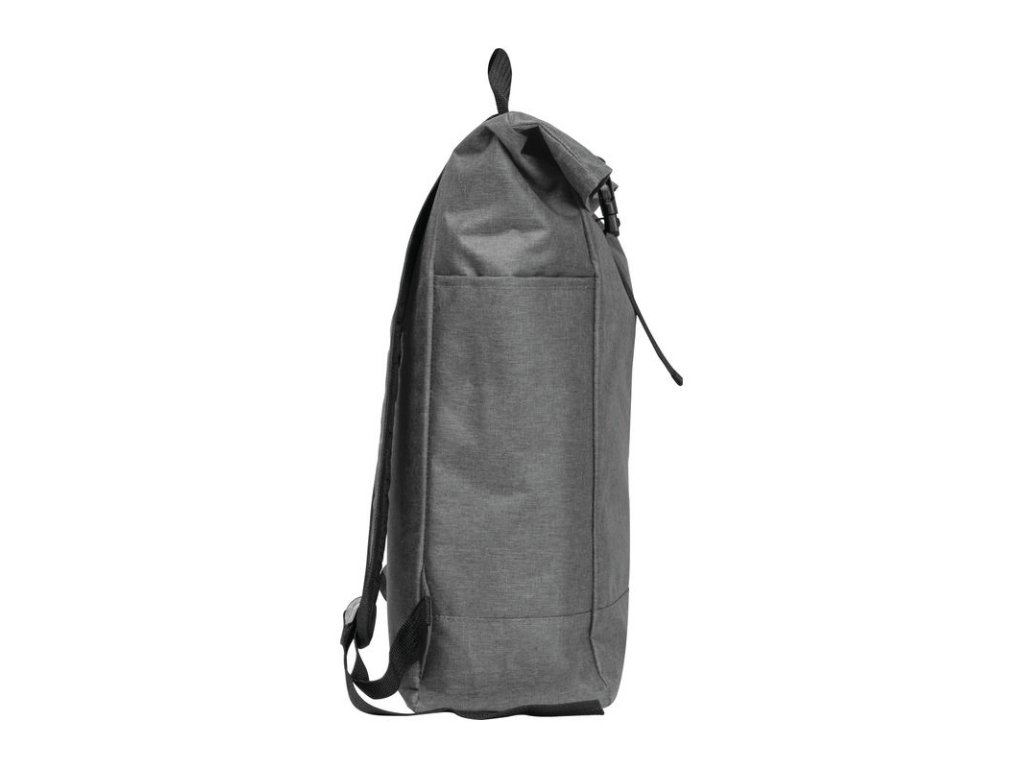 Batoh z 300D polyesteru so skladacím alebo rolovacím uzáverom, polstrovanými ramennými popruhmi, dvoma bočnými vreckami zvonku a rukoväťou na nosenie.