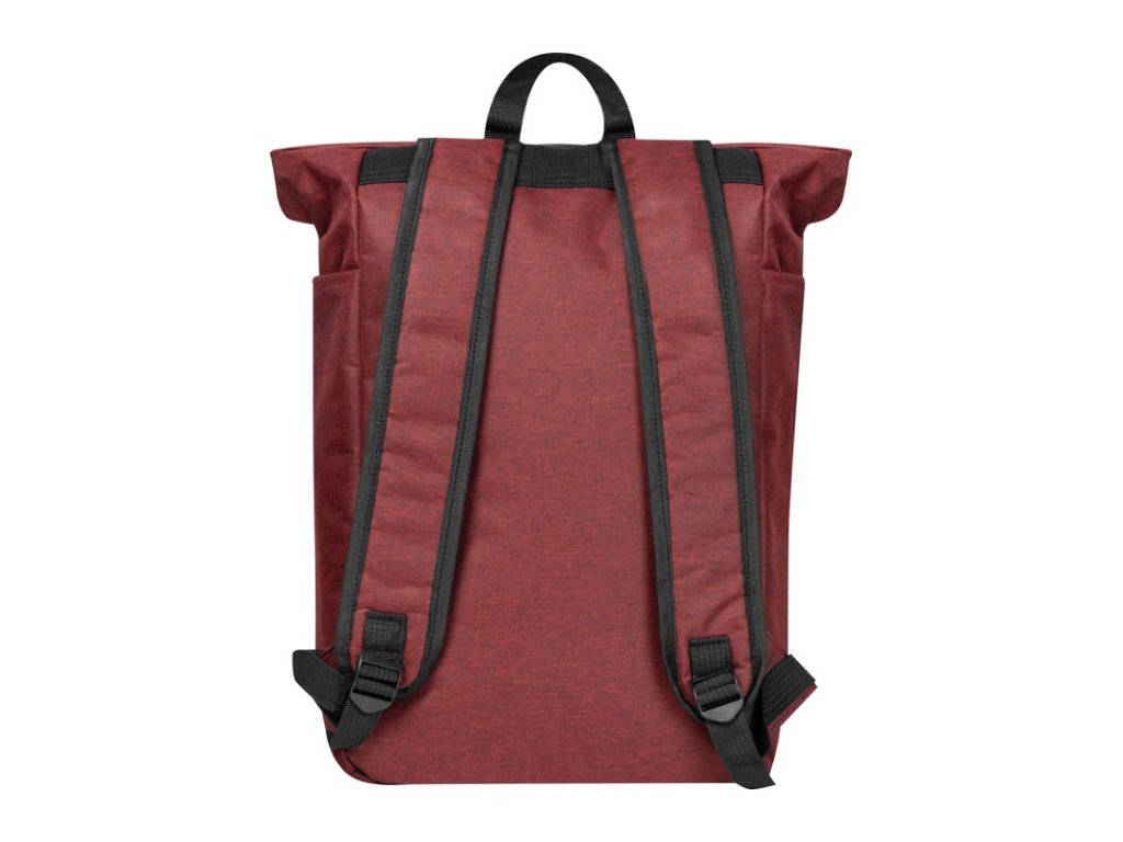 Batoh z 300D polyesteru so skladacím alebo rolovacím uzáverom, polstrovanými ramennými popruhmi, dvoma bočnými vreckami zvonku a rukoväťou na nosenie.