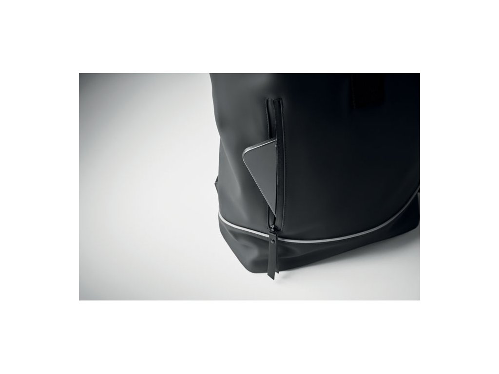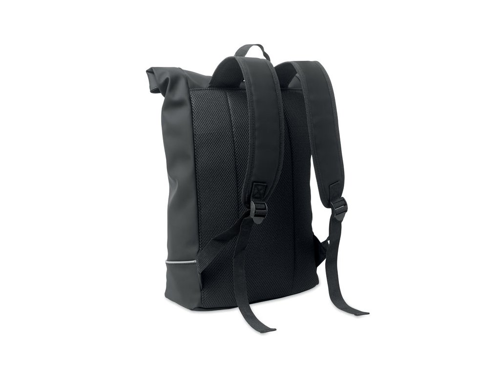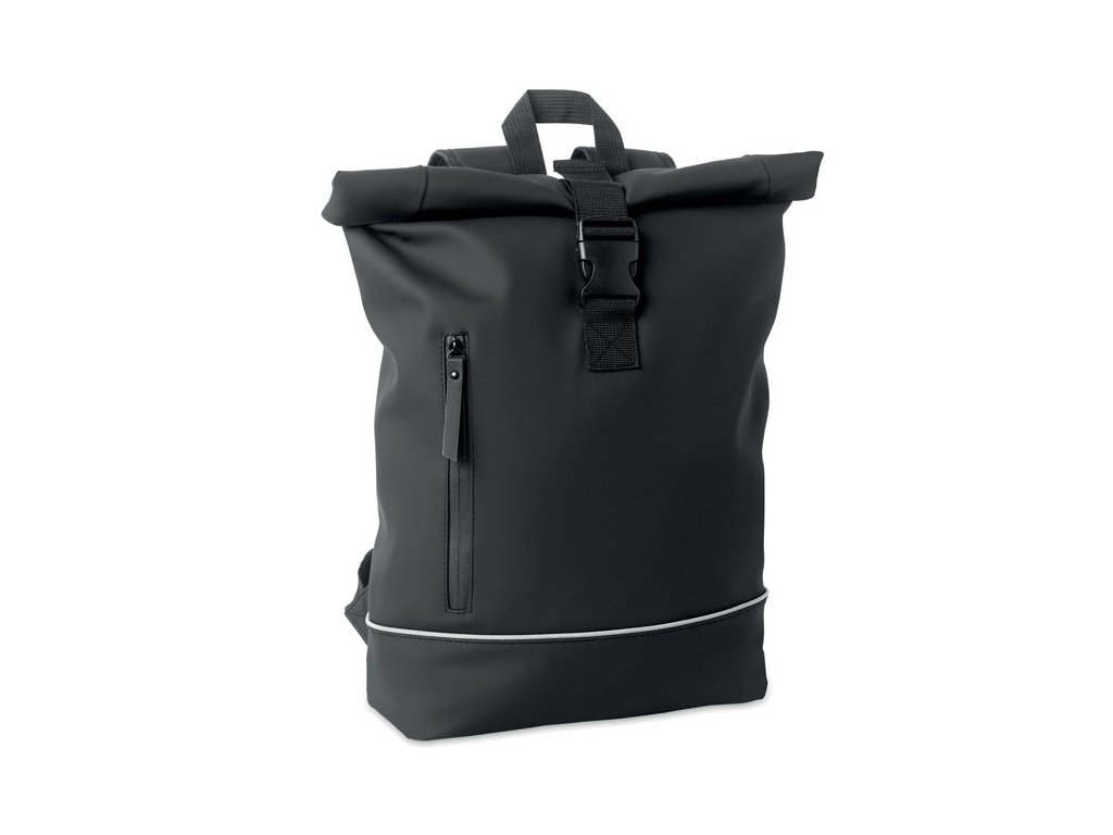 Rolovateľný batoh na 15-palcový notebook z mäkkého PU s vystuženým chrbtom a spodnou výstužou s reflexným pásikom. Vodotesné predné vrecko na zips. 210D RPET polyesterová podšívka.