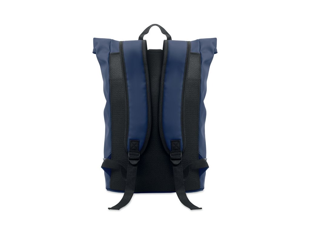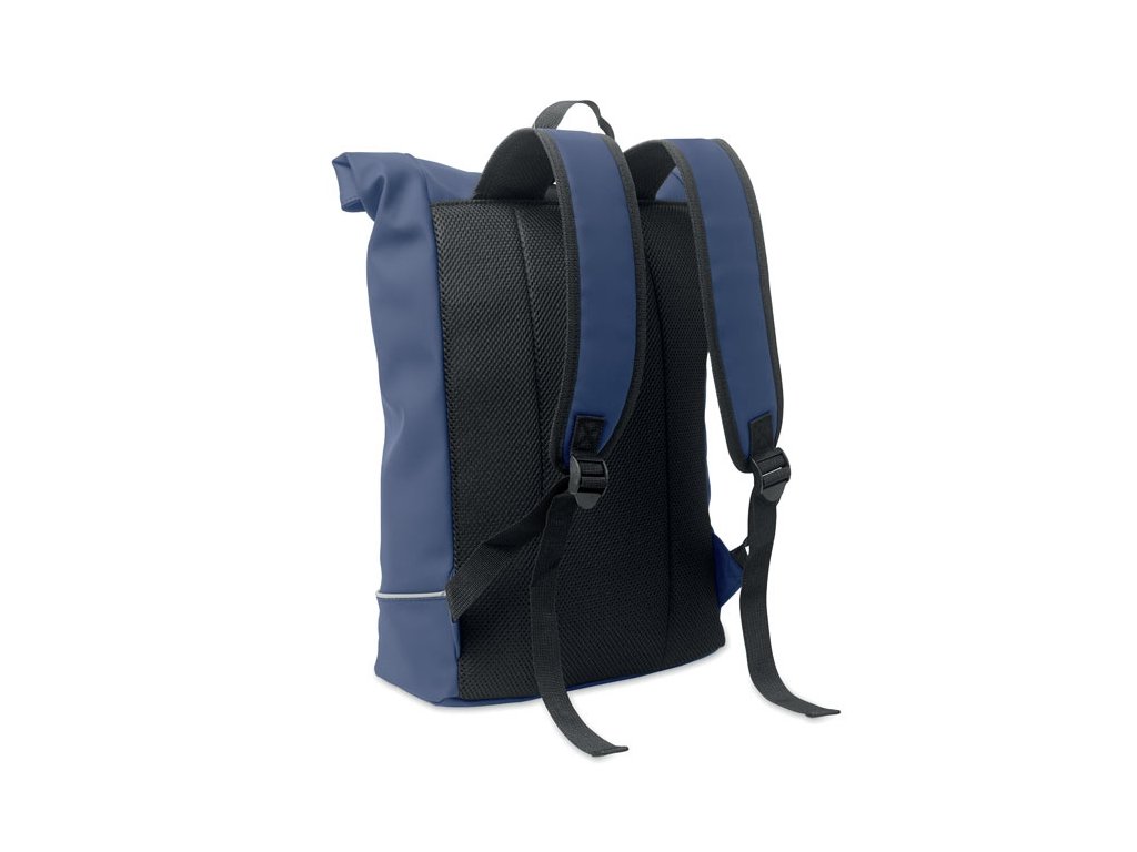 Rolovateľný batoh na 15-palcový notebook z mäkkého PU s vystuženým chrbtom a spodnou výstužou s reflexným pásikom. Vodotesné predné vrecko na zips. 210D RPET polyesterová podšívka.